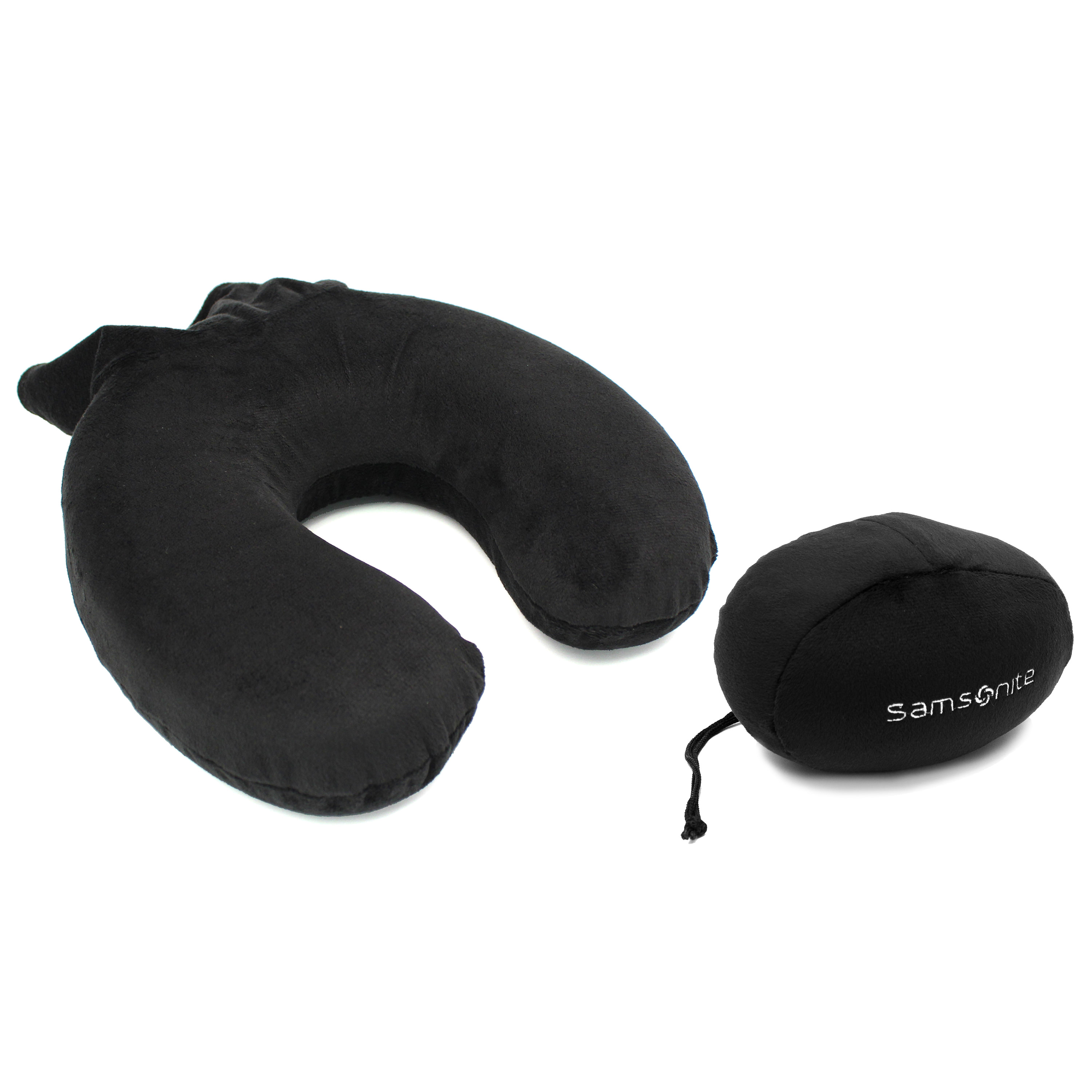 Brand Samsonite Collection Travel Accessories Product ID 77975-1041 Product Name Memory Foam Pillow with Pouch EAN/UPC 043202720536 Construction PERSONAL GOODS Colour Black Material Memory Foam & Jersey Warranty None Feature • Irresistibly soft, this U-shape design toggles snugly around yoru neck for maximum support and comfort • Memory foam conforms to neck for personalized comfort • Attached pouch compactly stores pillow for easy & clean storage when not in use • Use the convenient clip to attach pillow to your bag in transit • Overall Depth/Length (in) 3.5 Overall Width (in) 10.5 Overall Height (in) 12 Packing Depth/Length (in) 3.5 Packing Width (in) 10.5 Packing Height (in) 12 Weight (lb) 0.9 Capacity (litres) 7.2