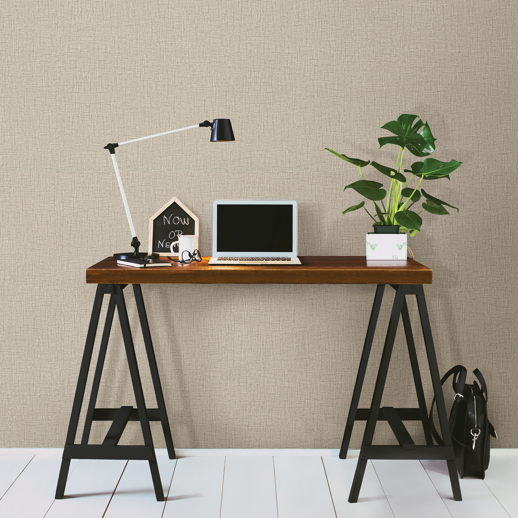 - A khaki wallpaper with a simple print. The crosshatch design has a matte finish for a modern style. Printed on a fabric backed vinyl.