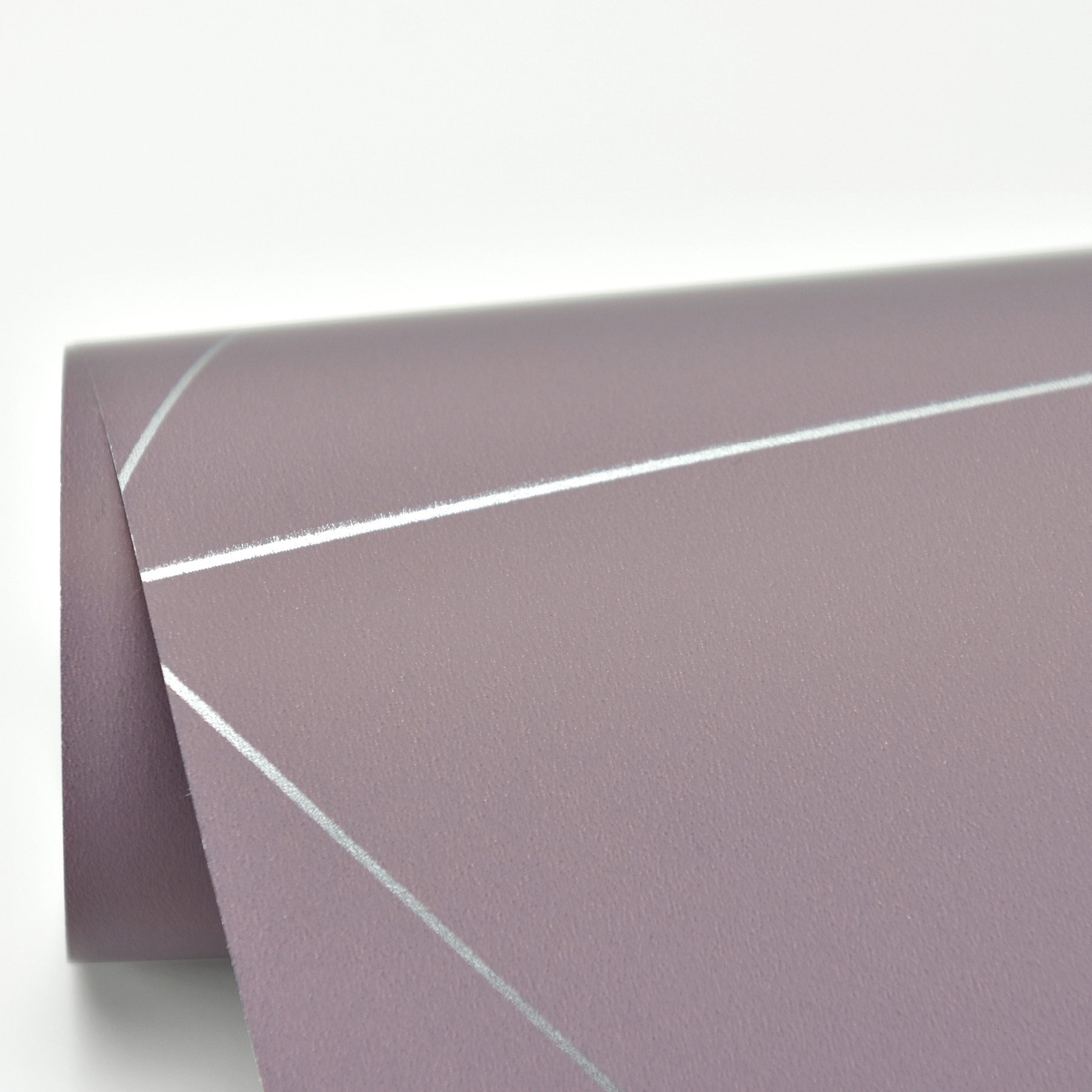 - A muted purple provides a distinguished backdrop for this wallpaper's pattern. Thin lines of metallic silver form a triangular print.