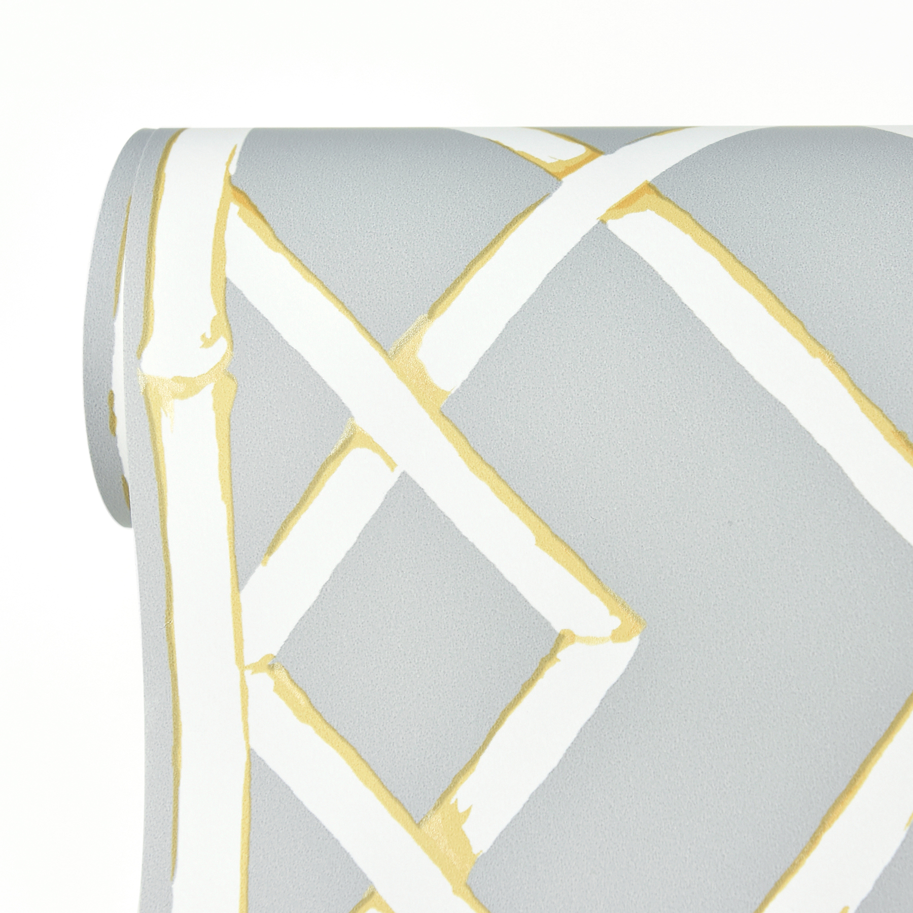 | Dynamic Description | Mica-infused ink accents add flashes of shine to this trellis stripe pattern for a traditional look with contemporary influence. The subtle yellow adds an unexpected but delightful pop to the grey wallpaper. Latticework is an unpasted, nonwoven wallpaper. |