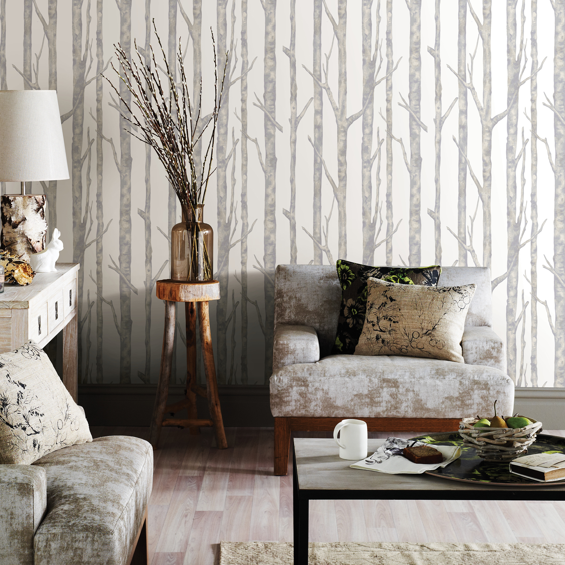| Dynamic Description | An elegant forest scene, beautiful trees shimmer against a crisp white background in this enchanted wallpaper. With raised inks and various neutral hues, this woodland wallpaper has a fabulous earthy style. Cameron is an unpasted, non woven wallpaper. |