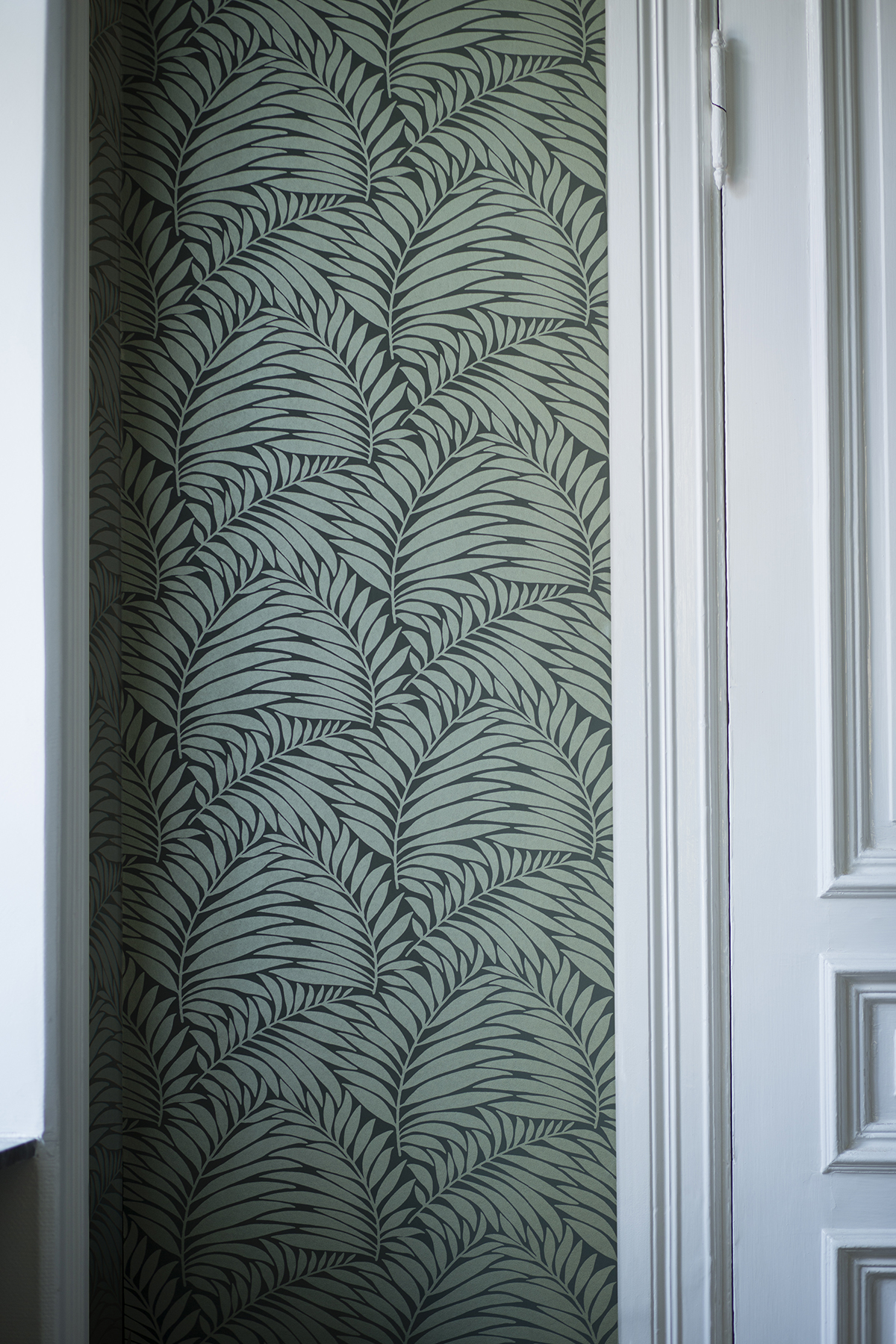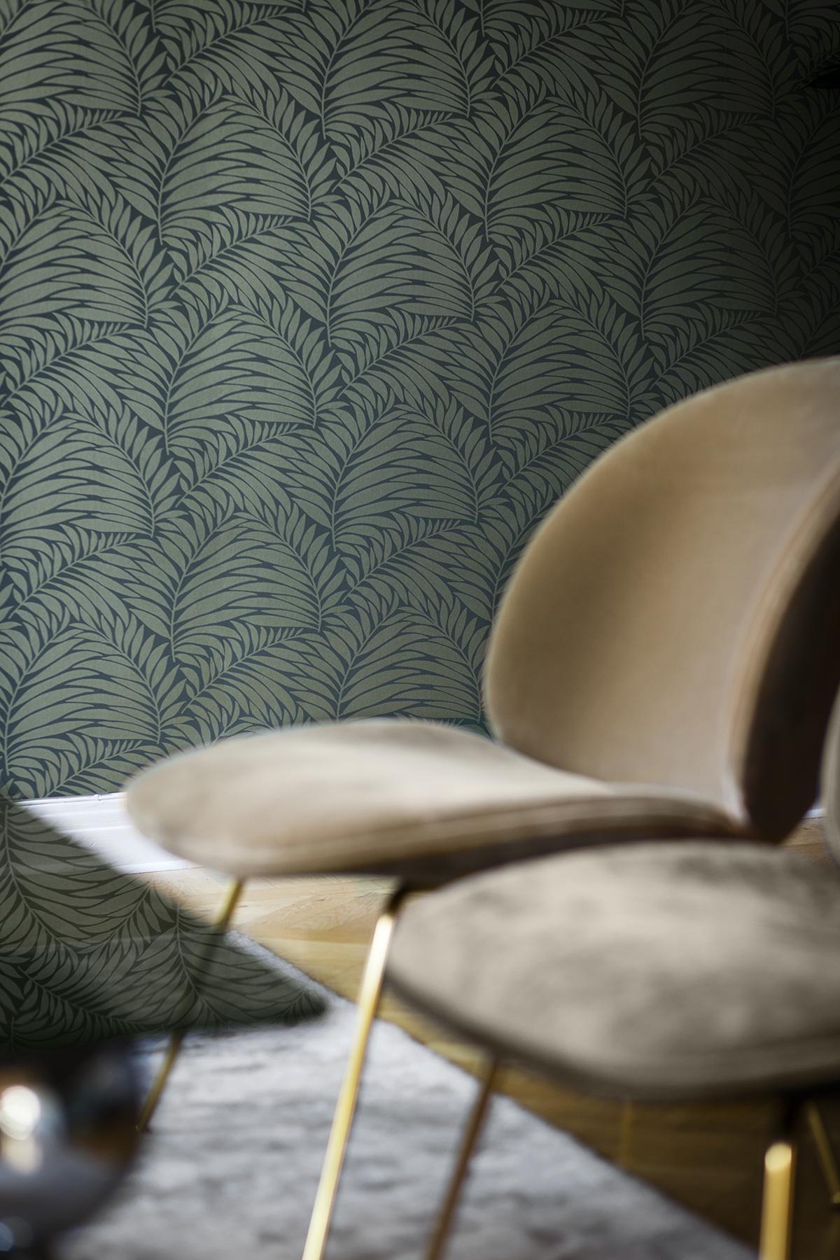 | Dynamic Description | Inspired by cool Mediterranean evenings, this leaf wallpaper has a tremendously chic look. Shimmering green fronds samba across a rich olive background, creating a dazzling geometric design with a botanical flare. Myfair is an unpasted, non woven wallpaper. |