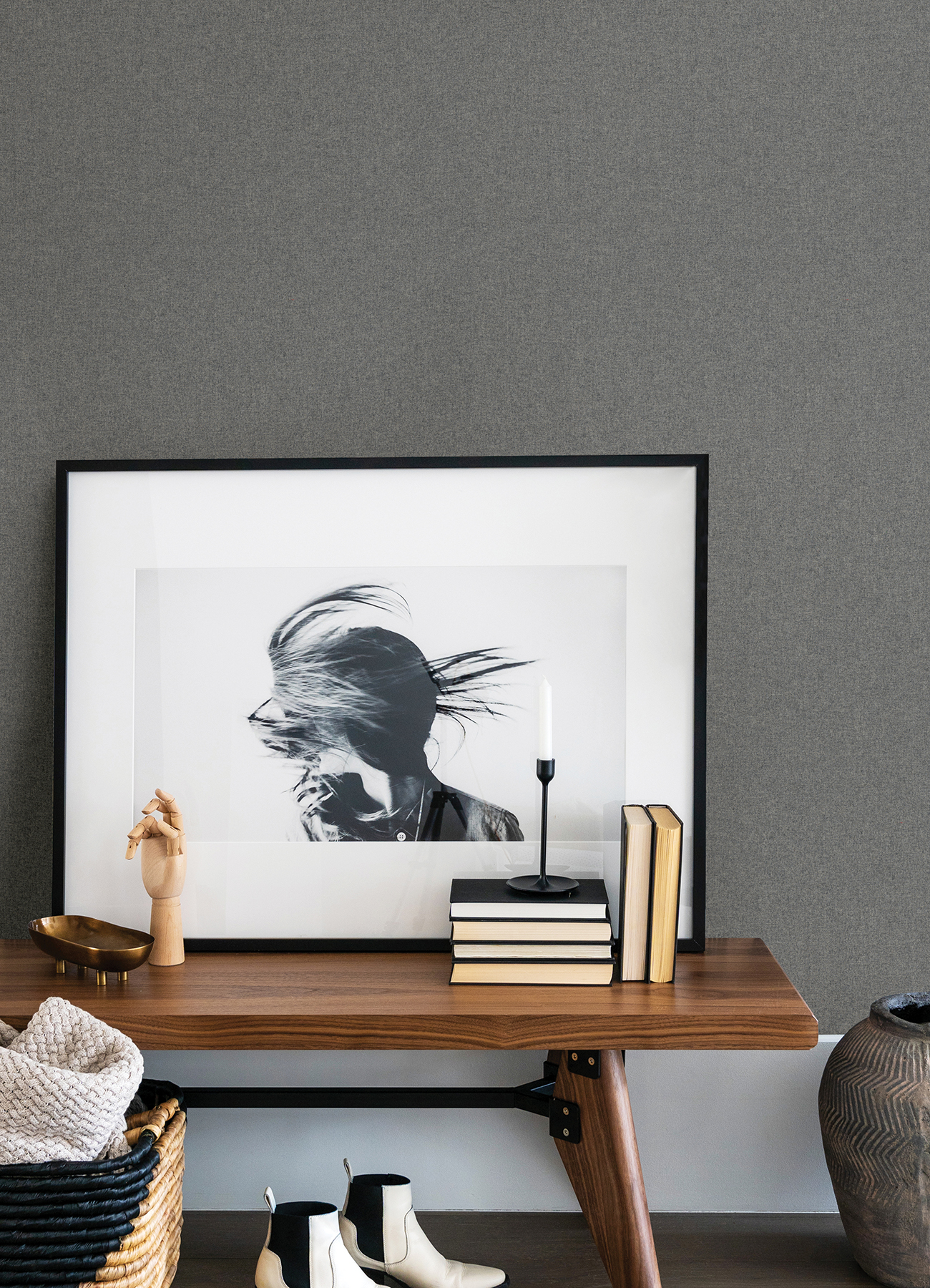 - This woolen wallpaper will add extra layer of cozy sophistication to your home. A soft blend of hues gives this light grey surface subtle depth. Jia Li is an unpasted, wool weave wallpaper.