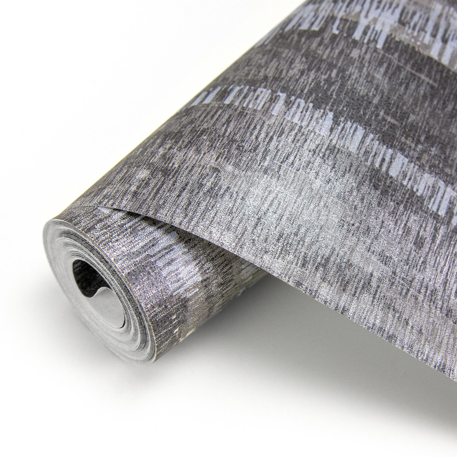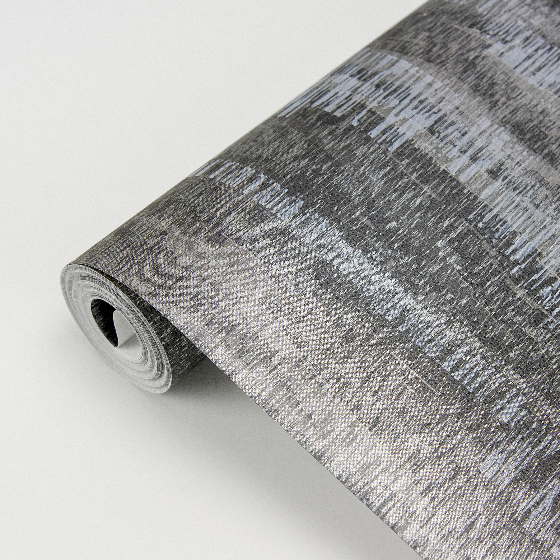 | Dynamic Description | Metallic and soft raised inks meld in this distressed stripe wallpaper. With silver accents, this design has a moody flair perfect for creating a stunning feature wall. Meteor is an unpasted, non woven wallpaper. |