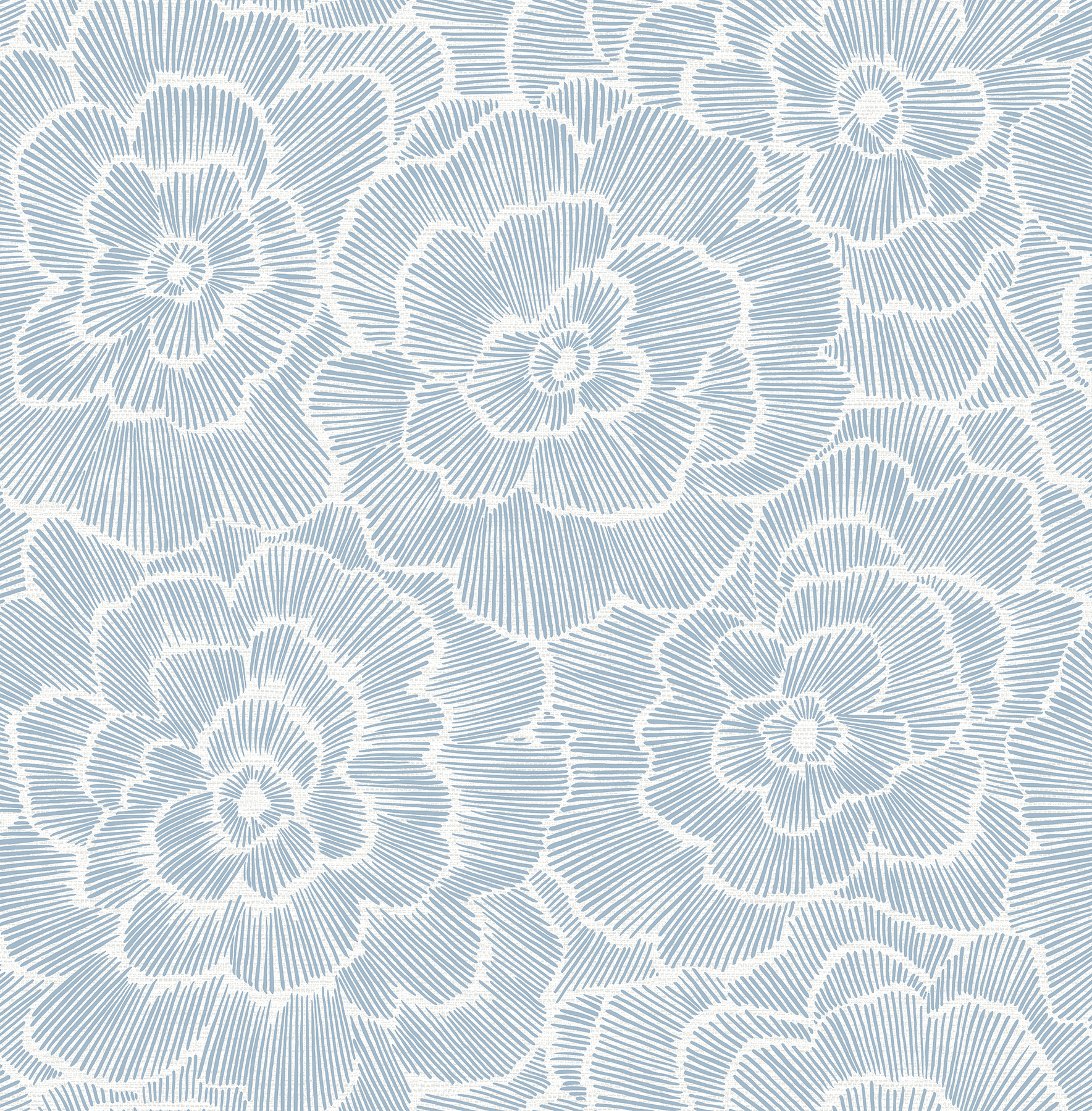 | Dynamic Description | Blooms appear to unfurl before your very eyes in this dynamic floral wallpaper. Set against a grasscloth patterned background, each petal is composed of strong strokes of blue raised inks, giving each flower texture and a sense of motion. Periwinkle is an unpasted, non woven wallpaper. |