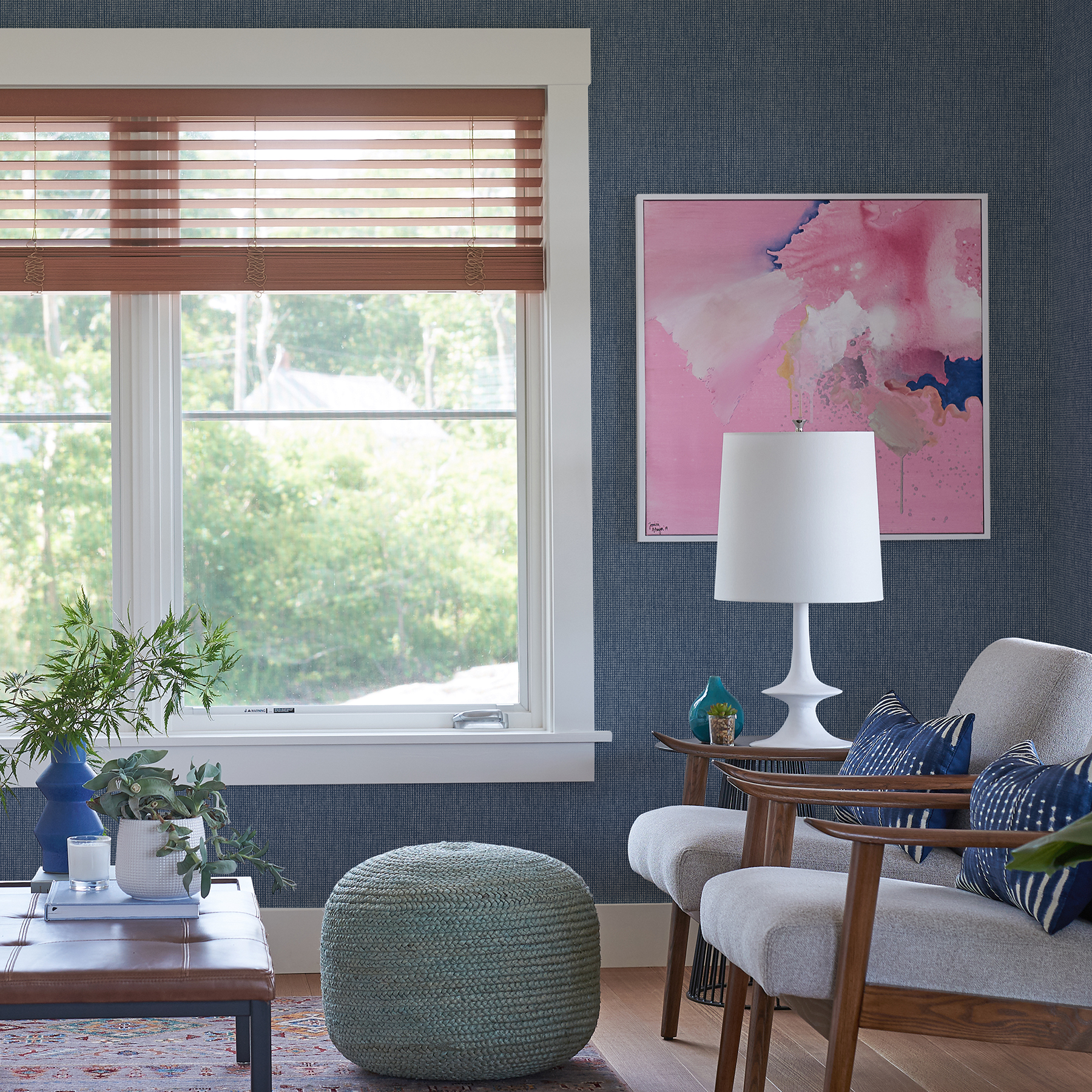 | Dynamic Description | This basketweave wallpaper is both breezy and elegant. Thin strips of light and denim blue are laced together to create a woven design that adds soft dimension to your walls. Dunstan is an unpasted, non woven fabric backed vinyl wallpaper. |