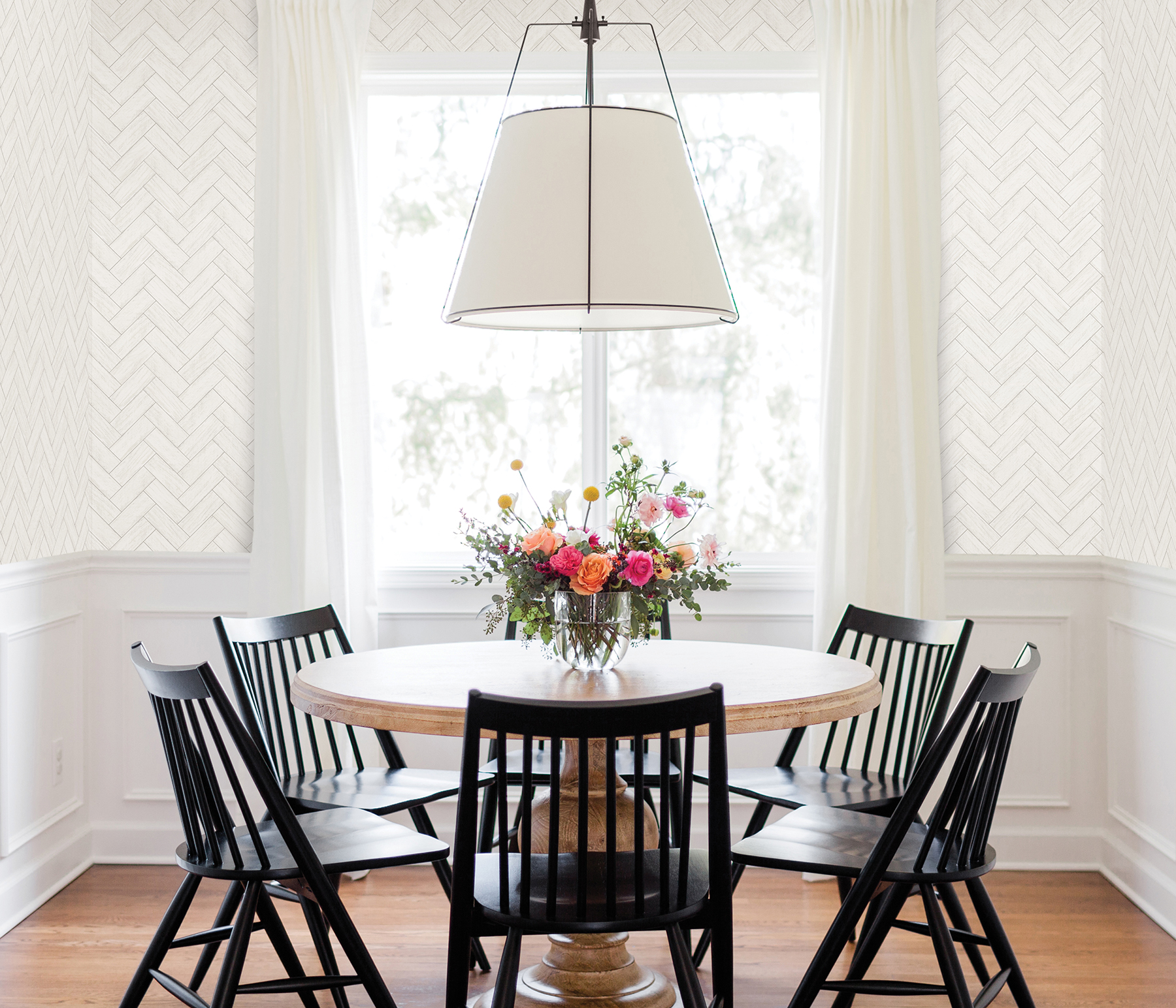 | Dynamic Description | Country chic meets modern styling in this beautiful herringbone print. Each off-white tile has woodgrain detailing for a rustic yet polished finish. Kaliko is a prepasted, acrylic coated paper wallpaper. |