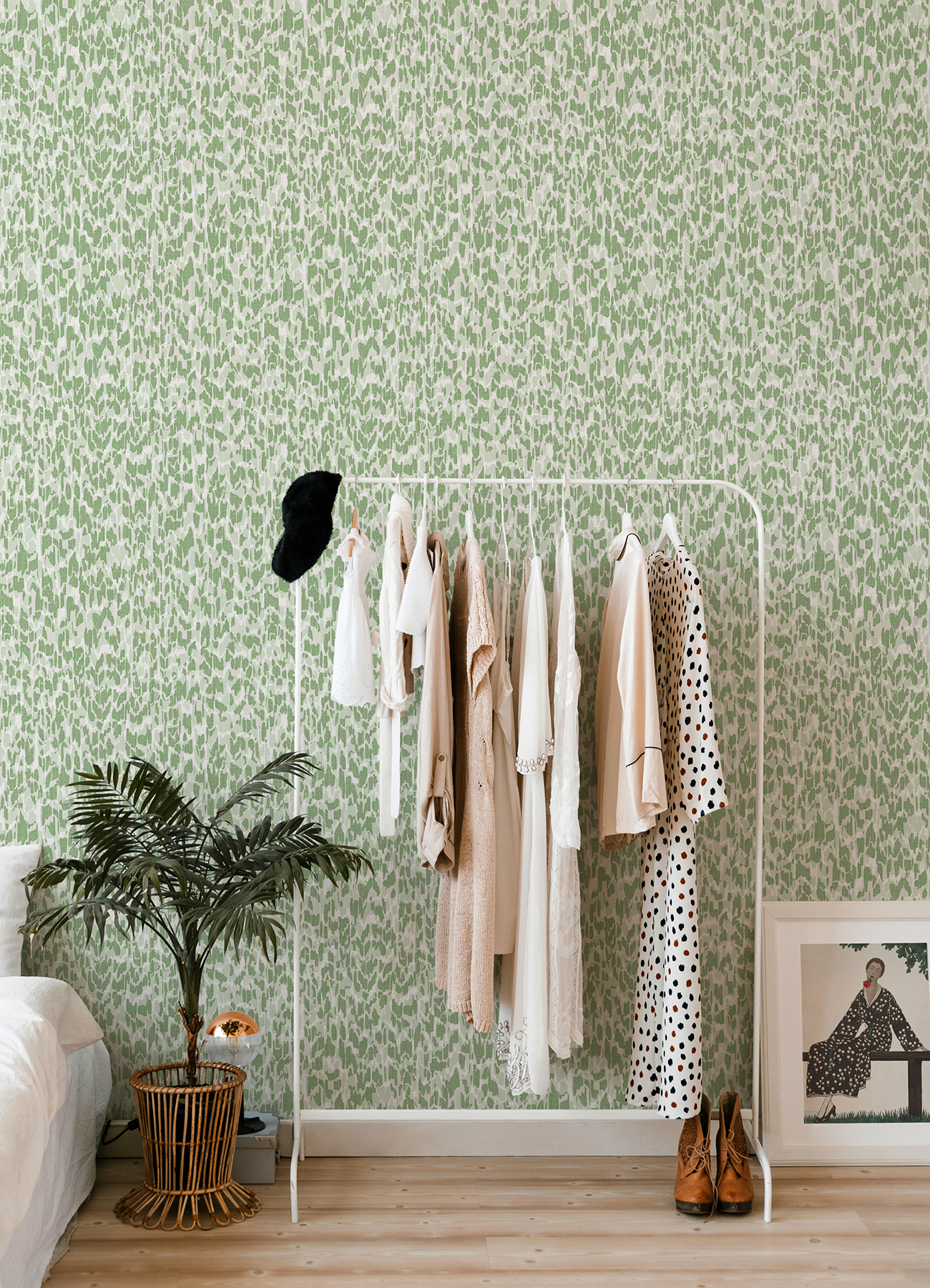 | Dynamic Description | Bring fresh sophistication to your walls with this artistic animal print. Cool green and grey blend together to create abstract spots accented with textural, raised inks. Flavia is an unpasted, non woven wallpaper. |