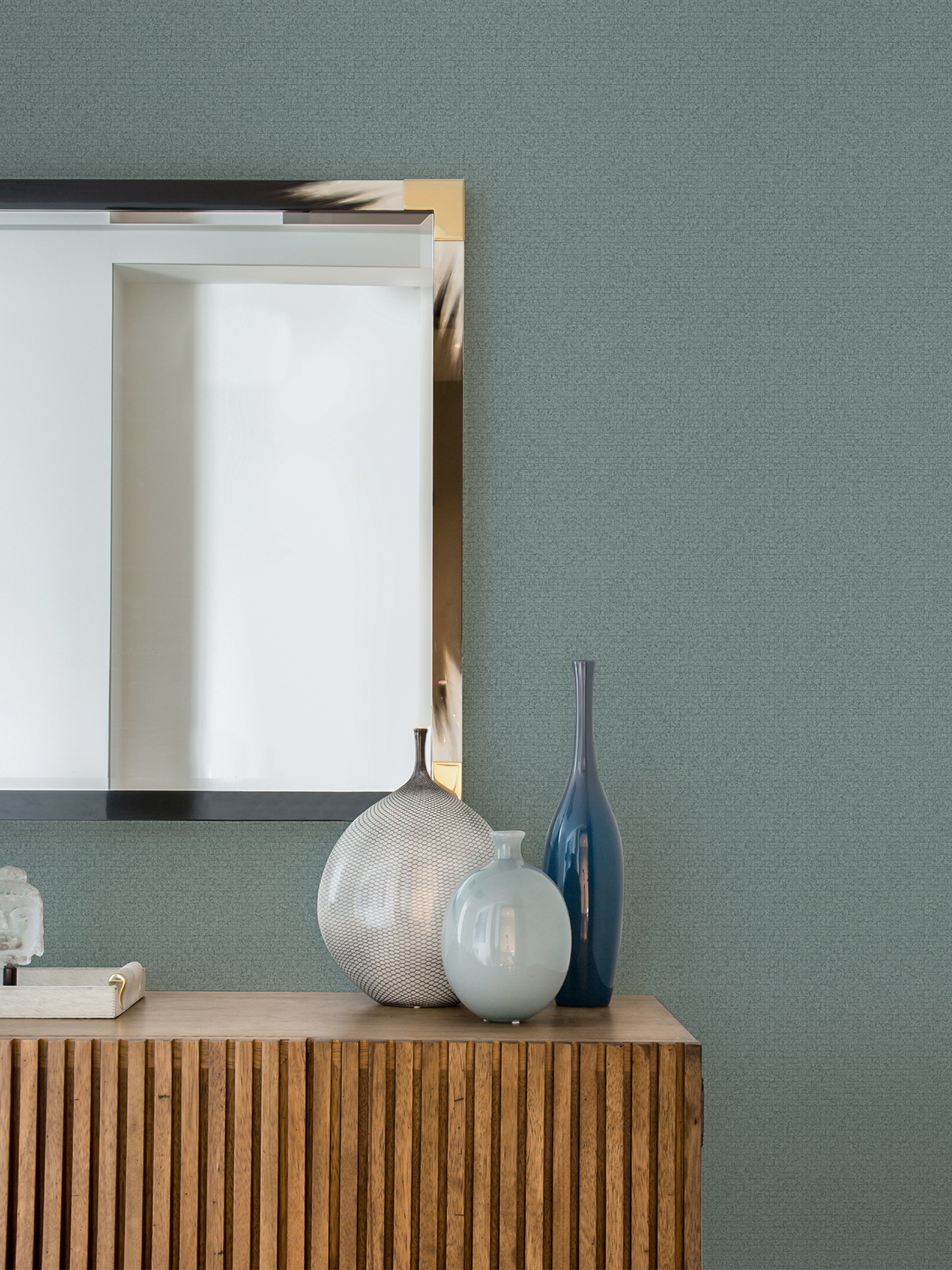| Dynamic Description | A combination of soft teal and textural accents add sleek sophistication your interiors! The fusion of rough, plaster-like textures and delicate geometric detailing brings subtle depth to your space. Hilbert is an unpasted, vinyl on paper wallpaper. |