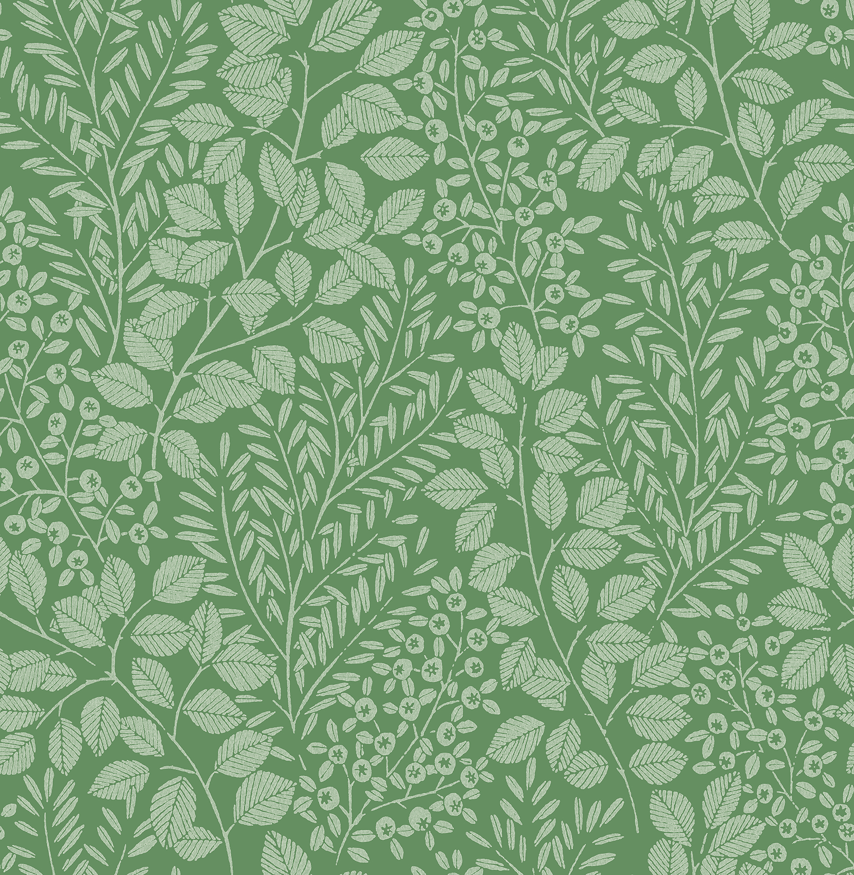 | Dynamic Description | Wrap your walls in the forest's serenity with this botanical wallpaper. Sprigs of berries and a variety of leavy plants twist together, inked in white against a green backdrop. Elin is an unpasted, non woven wallpaper. |