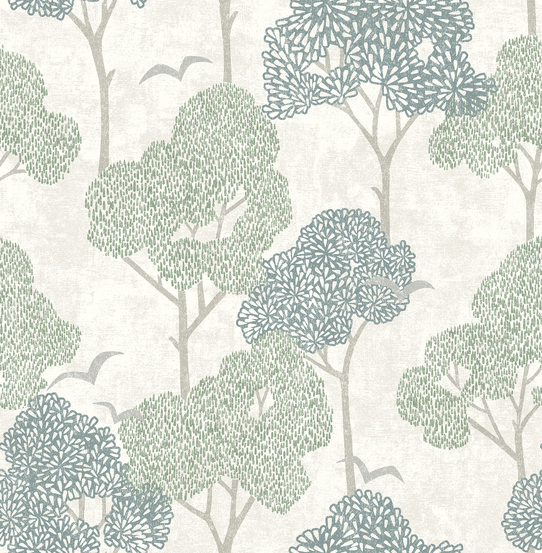 | Description + Bullets | Stately and serene, this stylized tree wallpaper will add an element of tranquil refinement to your walls. The artistically drawn forest sports sage and steely blue abstracted foliage, the negative space given extra depth with a distressed off-white background. Lykke is an unpasted, non woven wallpaper. Unpasted non woven material; 20.9-in repeat, straight match; Washable and strippable; 20.5-in by 33-ft long roll; Covers about 56.4 square feet |