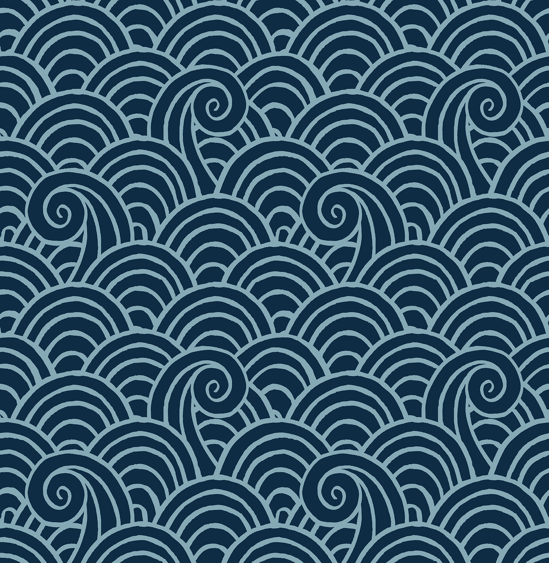 | Dynamic Description | This whimsical wave wallpaper will add serious style to your home! The navy ocean swells are shaped by thick, light blue lines that add movement to the design. Alorah is an unpasted, non woven wallpaper. |