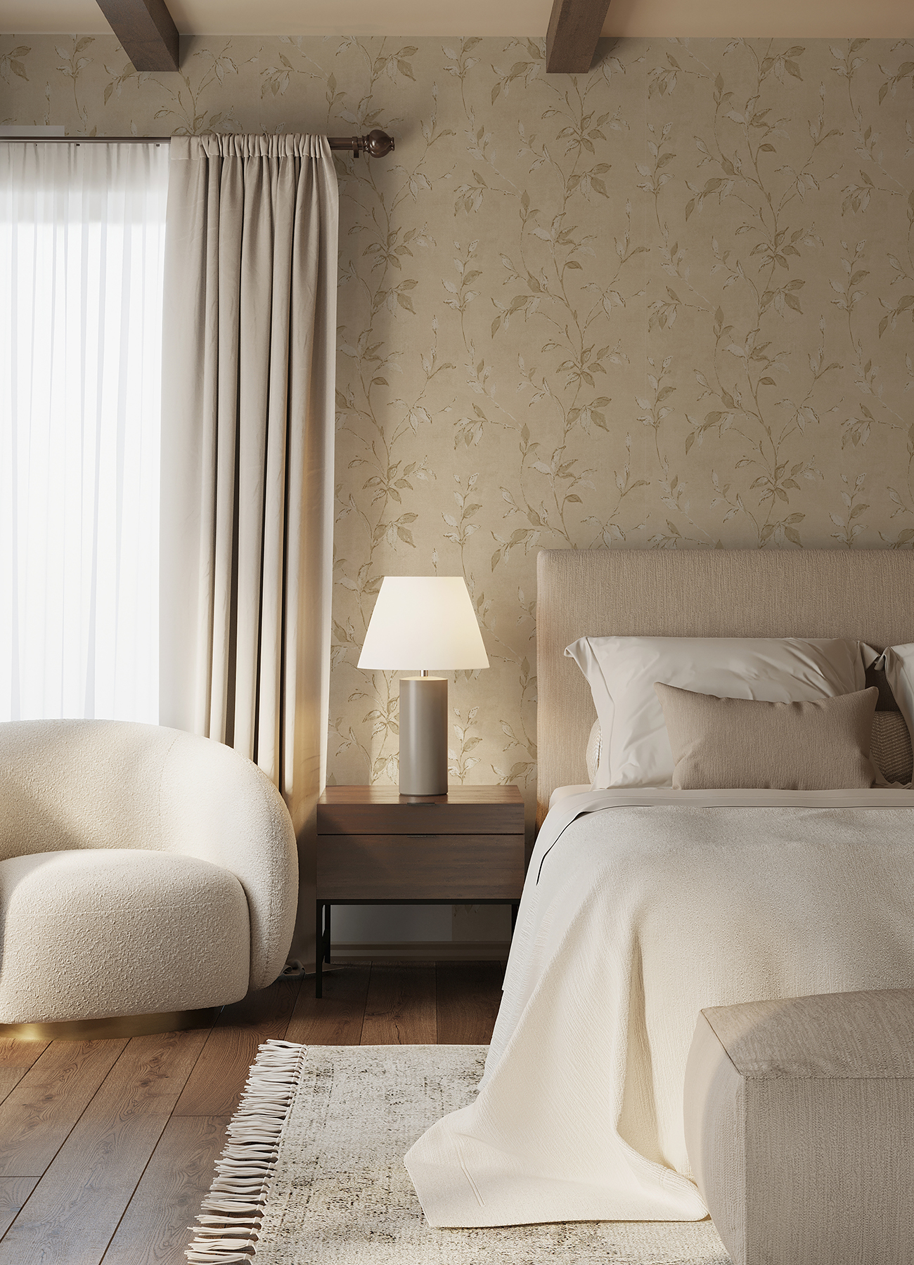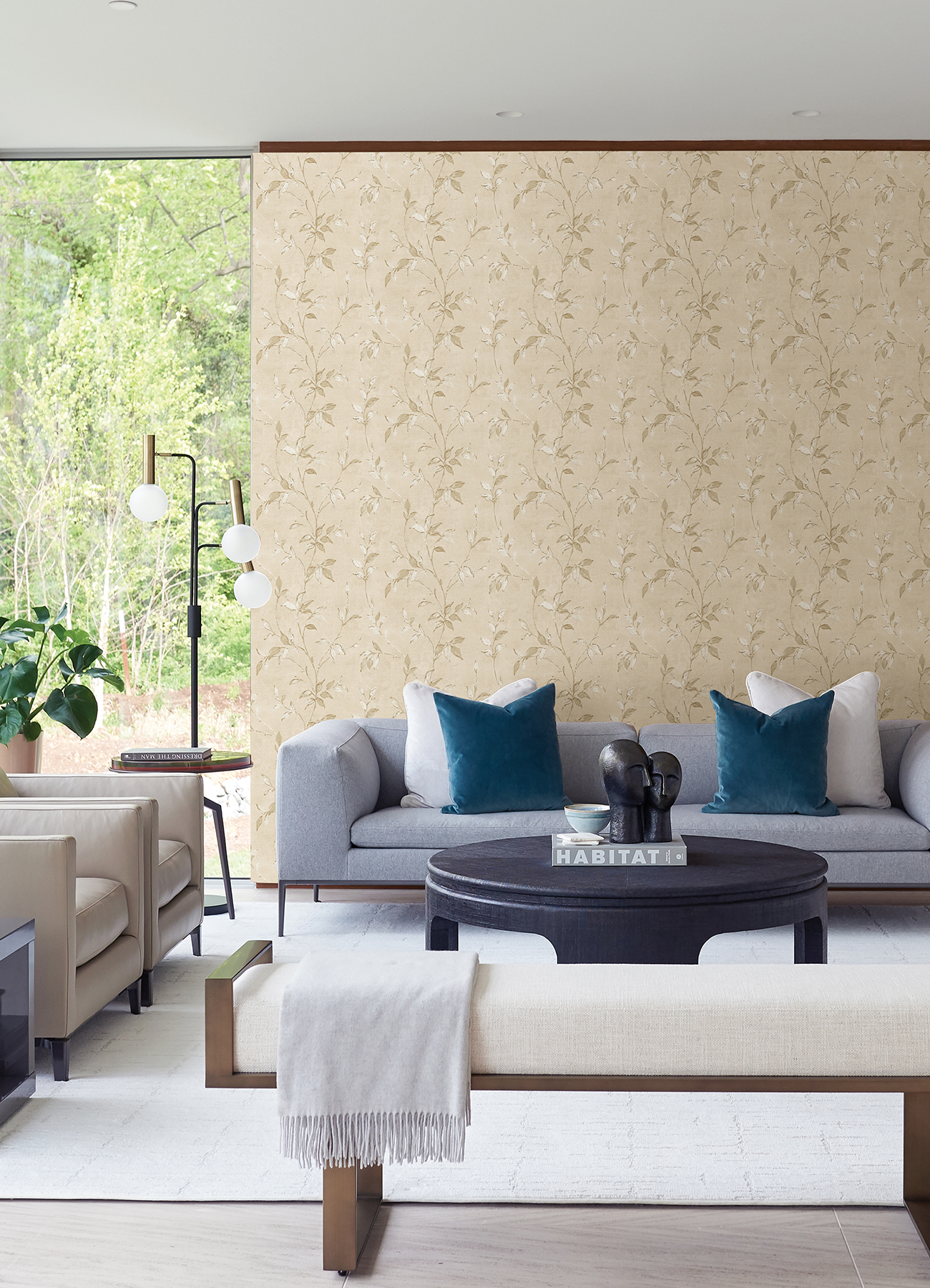 | Dynamic Description | This refined trail wallpaper is the embodiment of timeless elegance. The leafy white vines are highlighted with lines of metallic gold and climb along a backdrop of warm beige. Kupari is an unpasted, non woven wallpaper. |