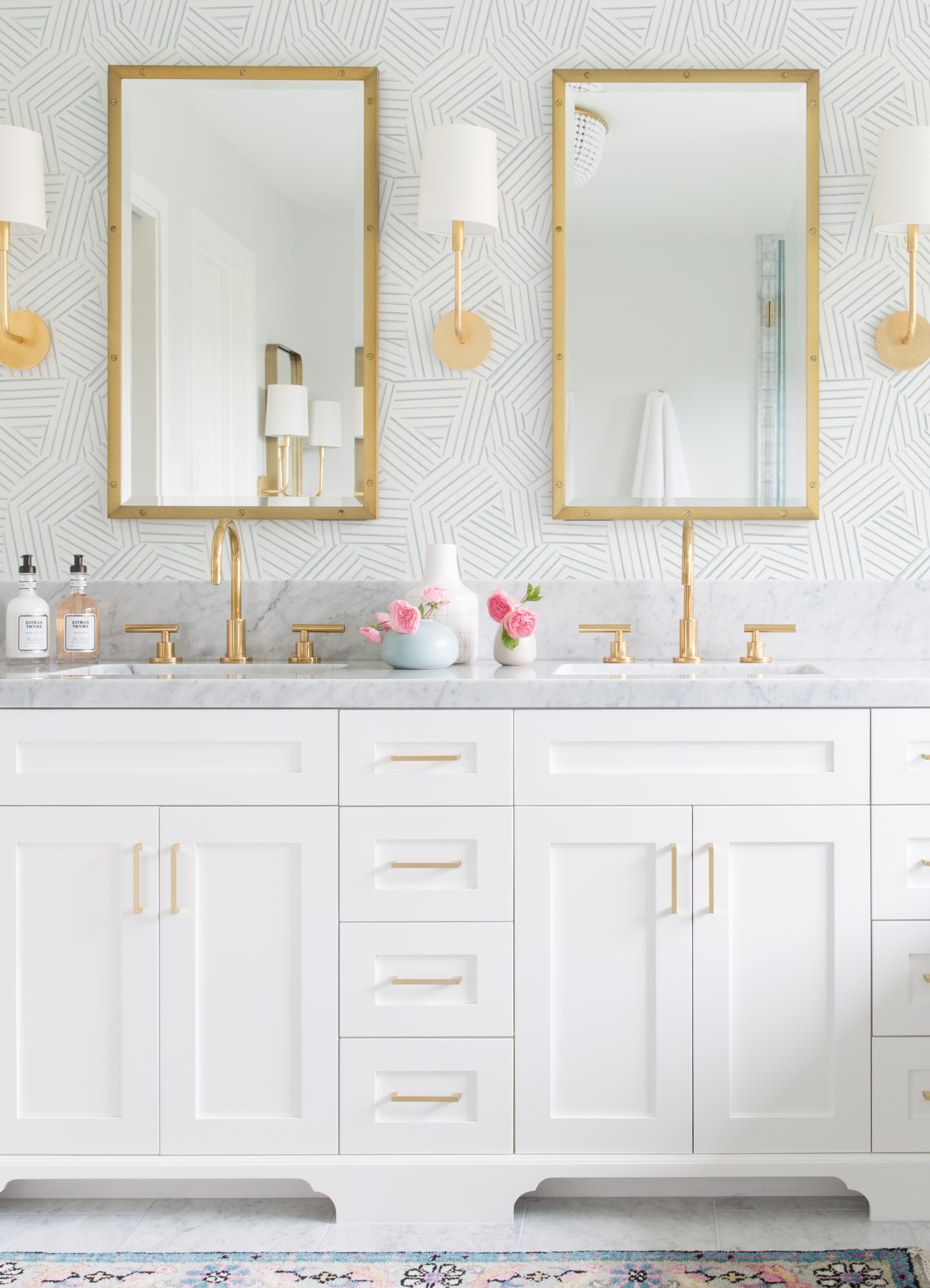 | Description + Bullets | Enjoy a geometric accent with an airy and inviting feel with this sweet wallpaper! Wide-set baby blue lines form abstracted shapes with an interwoven feel. Helene is an unpasted, non woven wallpaper. Unpasted non woven material; 20.9-in repeat, straight match; Washable and strippable; 20.5-in by 33-ft long roll; Covers about 56.4 square feet |