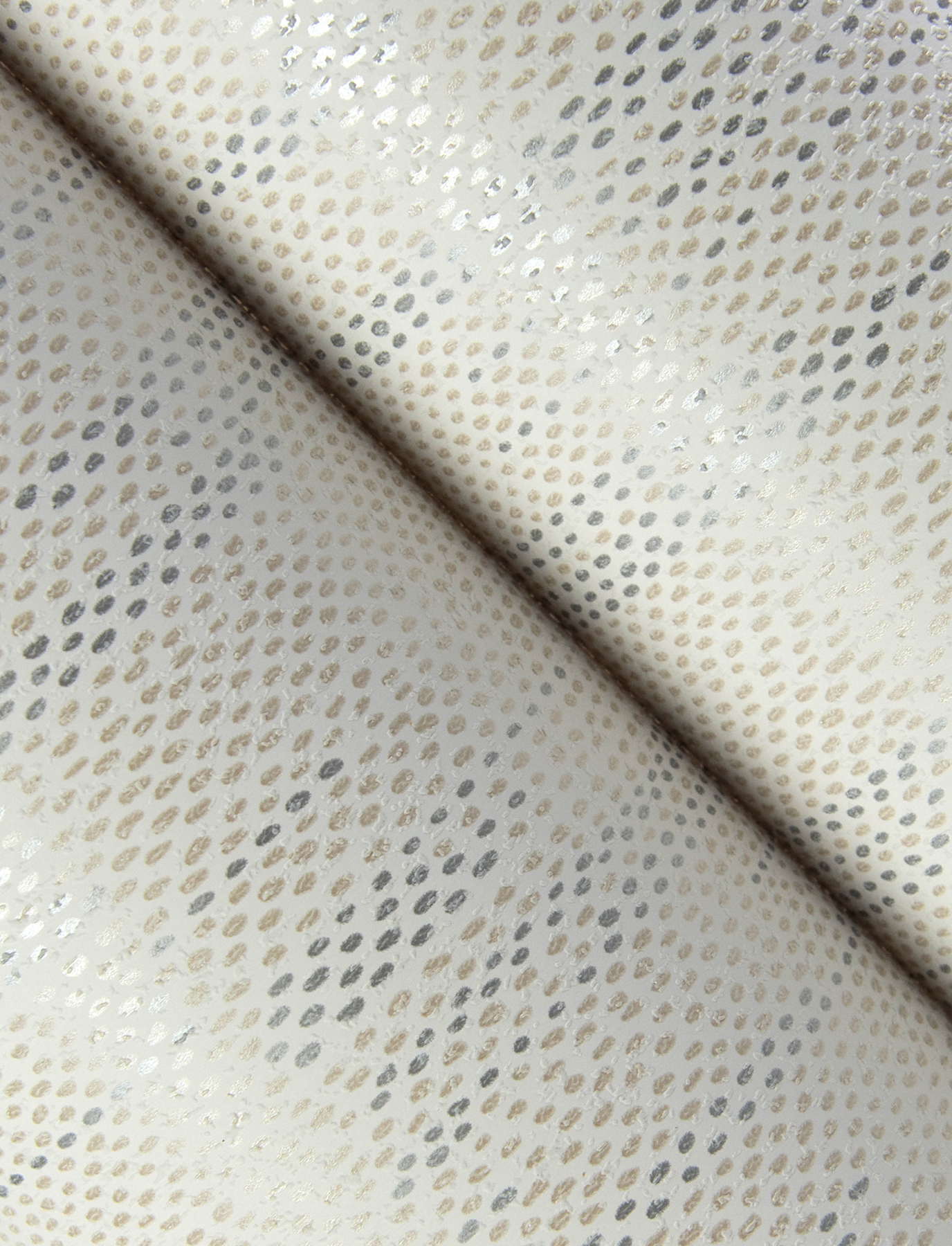 | Description + Bullets | This abstract, waving stripe is perfect for bringing modern depth to your interiors. The stippled dots alternate between metallic silver and shimmering champagne, with raised inks adding texture to this entire wallpaper. Baris is an unpasted, non woven wallpaper measuring 20.5 inches wide by 33 feet long, covering approximately 56.4 square feet per roll. Unpasted non woven material; 20.86-in repeat, straight match; Washable and strippable; 20.5-in by 33-ft long roll; Covers about 56.4 square feet |