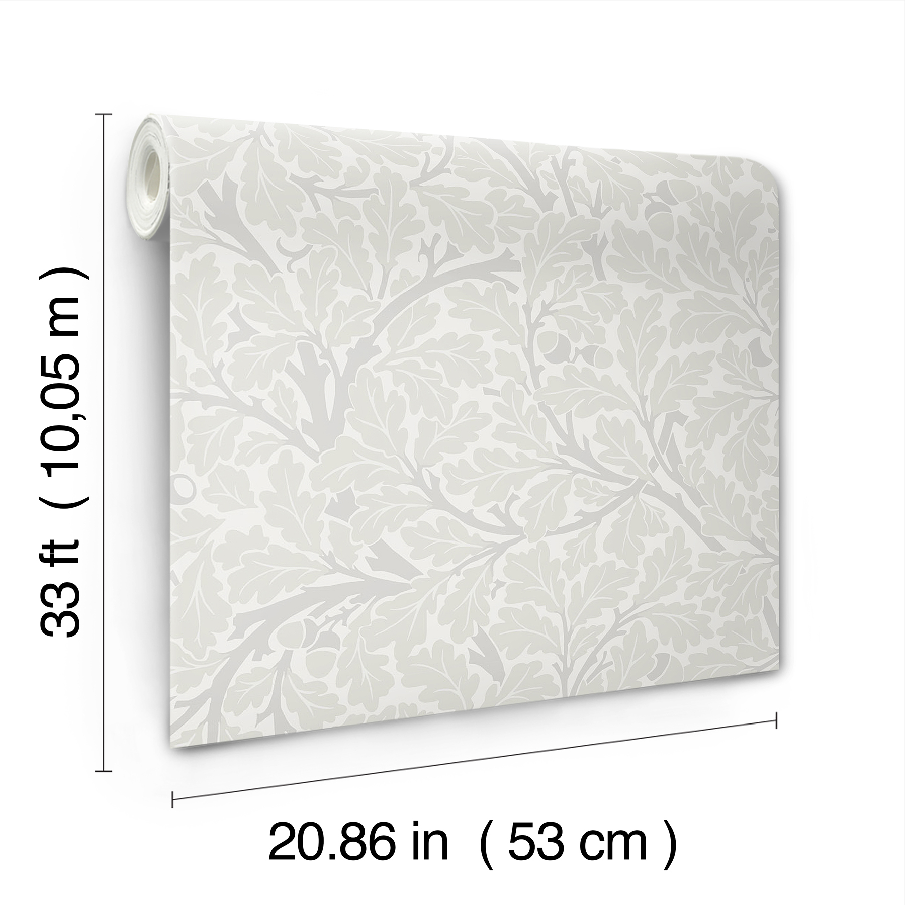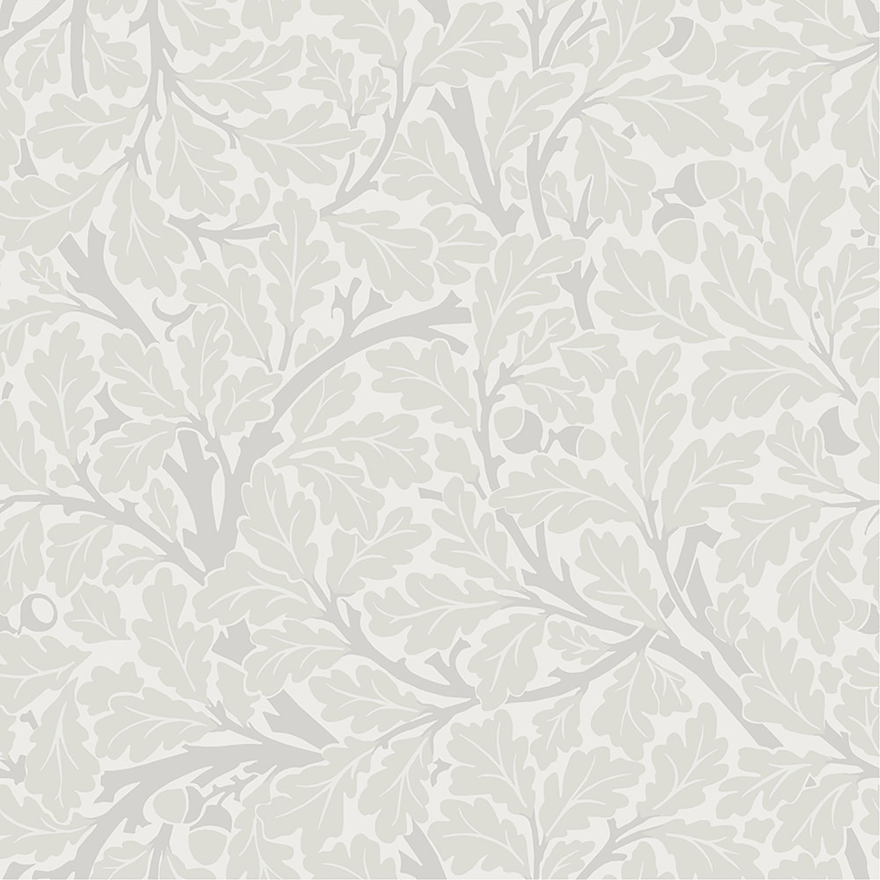 | Dynamic Description | The mighty English oak tree is celebrated in this original Morris pattern. Soft curved branches, joyful sweeps of foliage and delicate acorns - all inked in delicate greys - jostle for space throughout this repeating pattern, creating a striking yet subtle classic. Oak Tree is an unpasted, non woven wallpaper measuring 20.9 inches wide by 33 feet long, covering approximately 57.5 square feet per roll. |