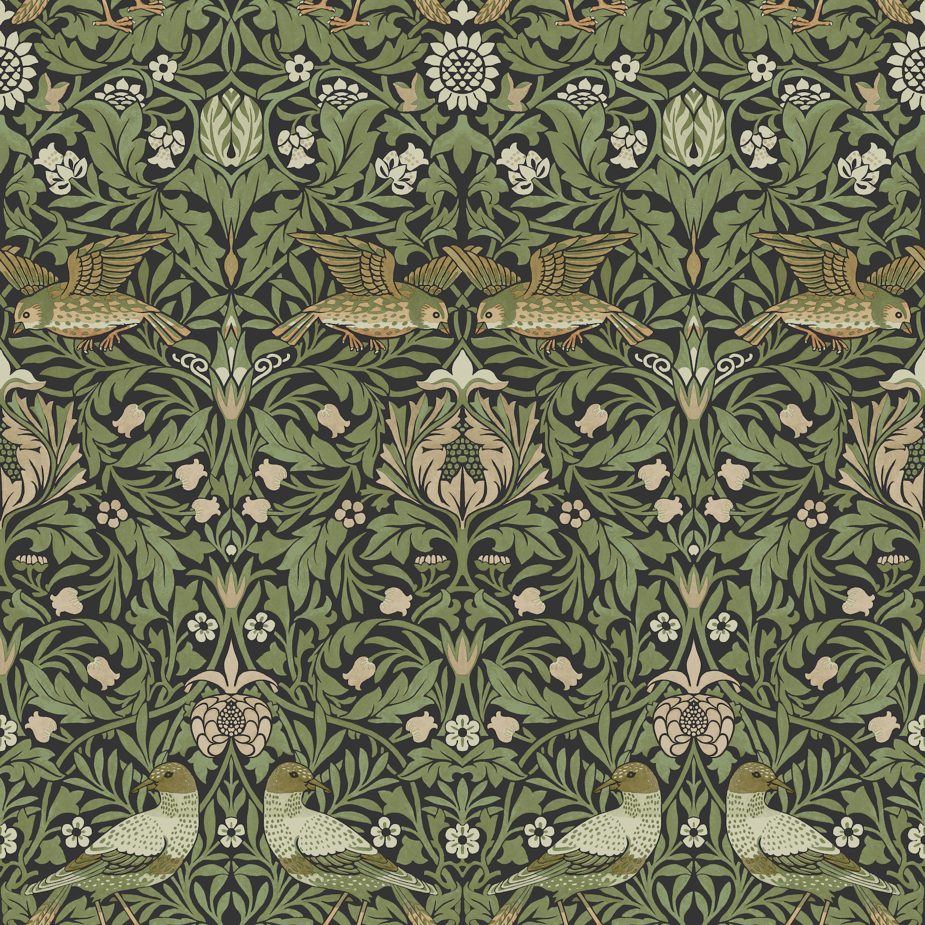 | Dynamic Description (French) | Inspiré d'un motif conçu par Morris pour le salon de sa Kelmscott House, Bird représente des couples de pigeons ramiers et de grives perchés dans un feuillage luxuriant composé de tournesols, de campanules et de coquelicots stylisés. Il est présenté ici dans une palette de couleurs sauge, céleri, mandarine, beige, chartreuse pâle, crème et brun foncé. Bird est un papier peint non tissé non encollé mesurant 53 cm de large et 10 mètres de long, couvrant environ 5,3 m² par rouleau. |