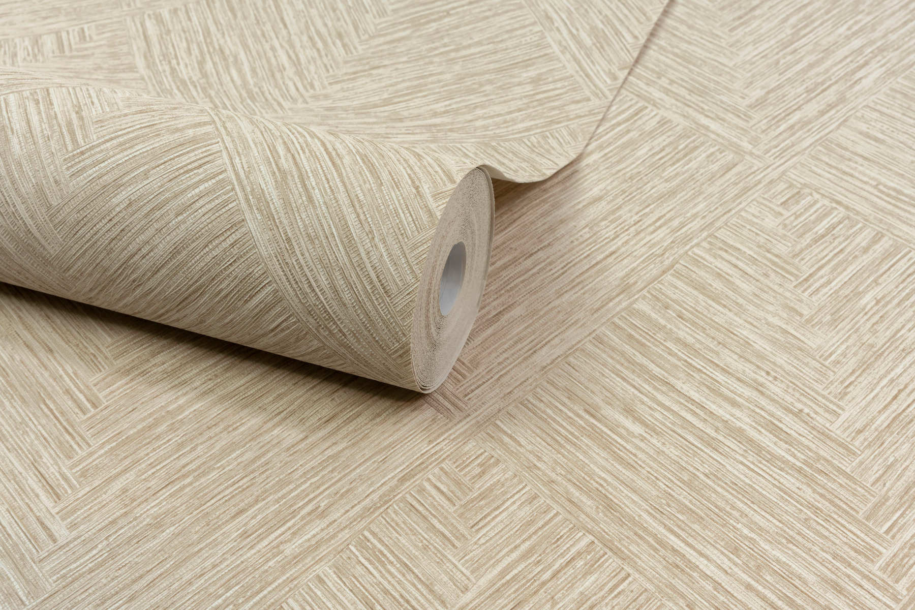 | Dynamic Description | Reminiscent of parquet flooring, this textured design features diamonds shaped by herringbone inlays. Seen here in pale brown and cream. Hollis is an unpasted, vinyl on nonwoven wallpaper measuring 20.9 inches wide by 33 feet long, covering approximately 57.5 per roll. |