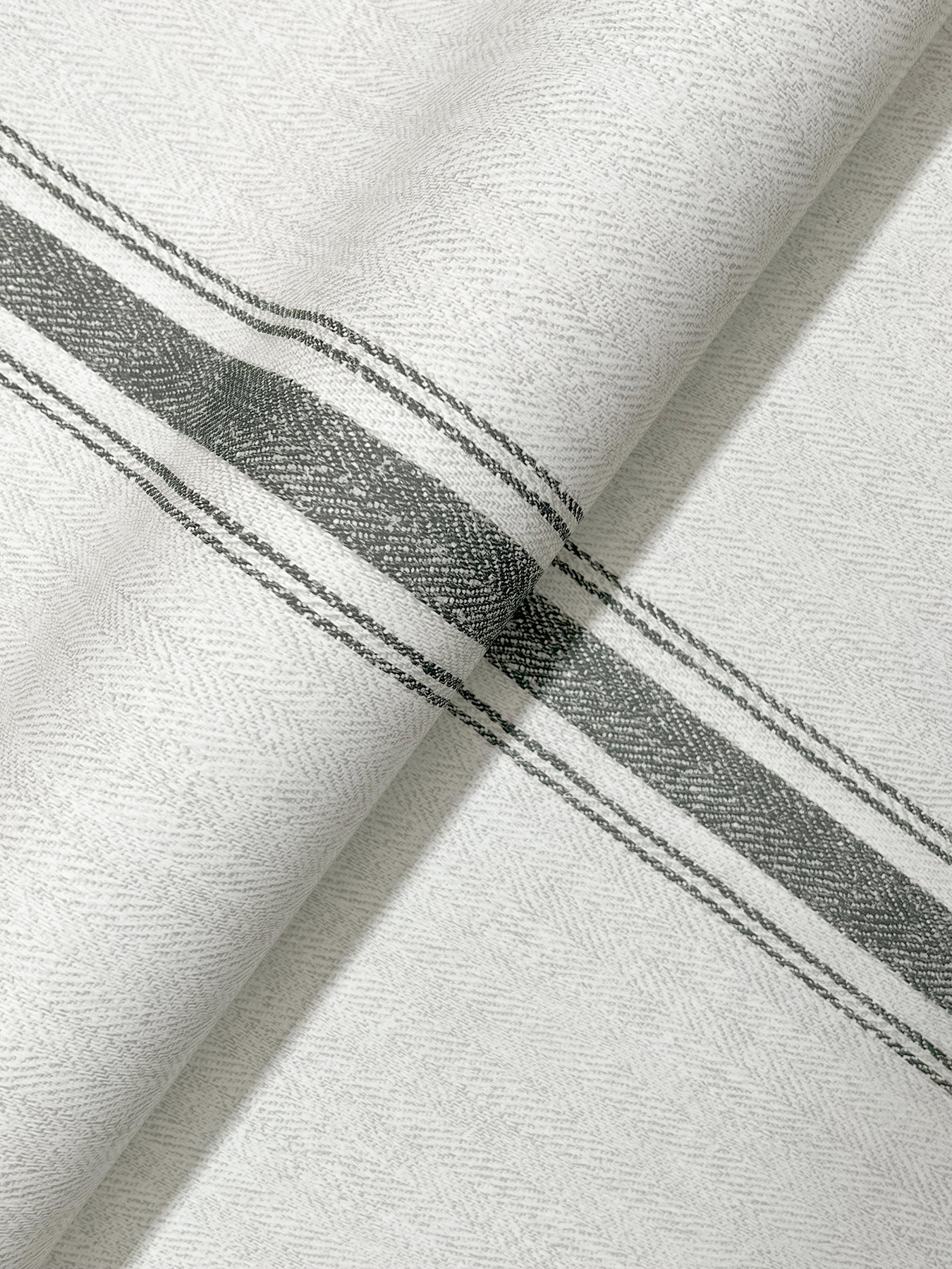 | Dynamic Description | This classic and comforting stripe design features a central column embellished with a pair of pinstripes on each side, the backdrop imbued with a chevron weave reminiscent of sturdy linen. Seen here with worn black accents against palest grey. Linette is a prepasted, easy walls wallpaper measuring 20.5 inches wide by 33 feet long, covering approximately 56.4 per roll. |