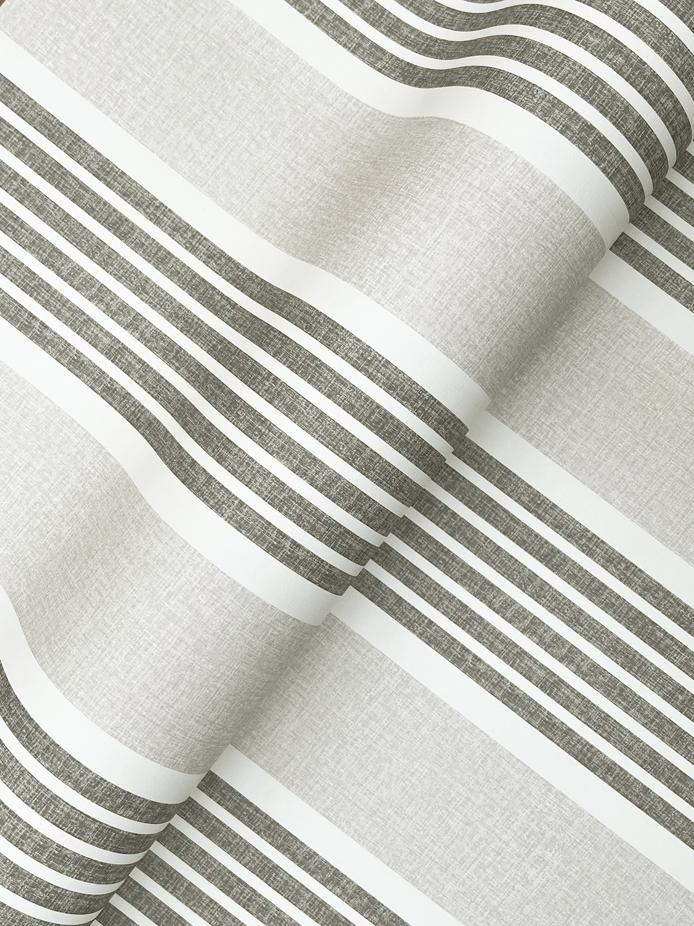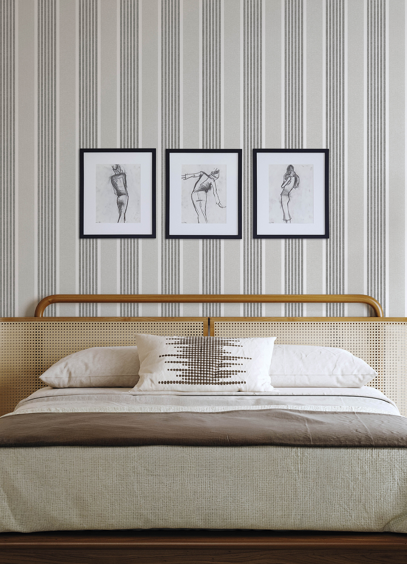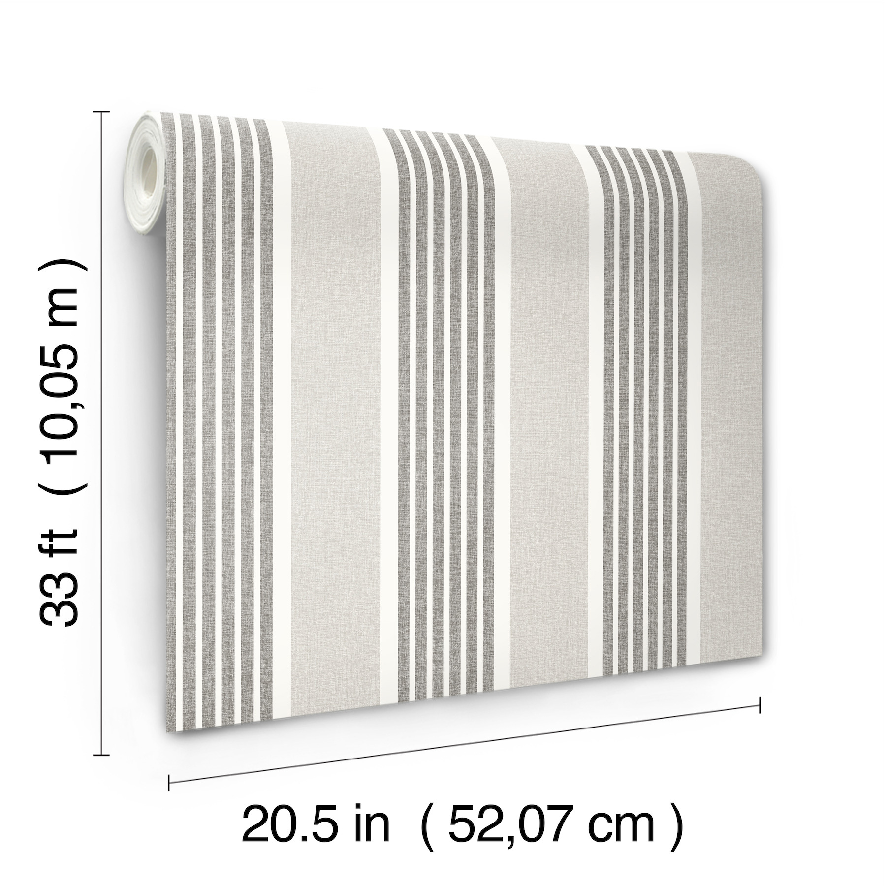 | Dynamic Description | Embellished, multi-striped bands are separated by solid stripes in this dynamic reimagination of the classics. Grey stripes offer spacing between groups of white and charcoal lines, all imbued with fine linen detailing. Bingley is a prepasted, easy walls wallpaper measuring 20.5 inches wide by 33 feet long, covering approximately 56.4 per roll. |