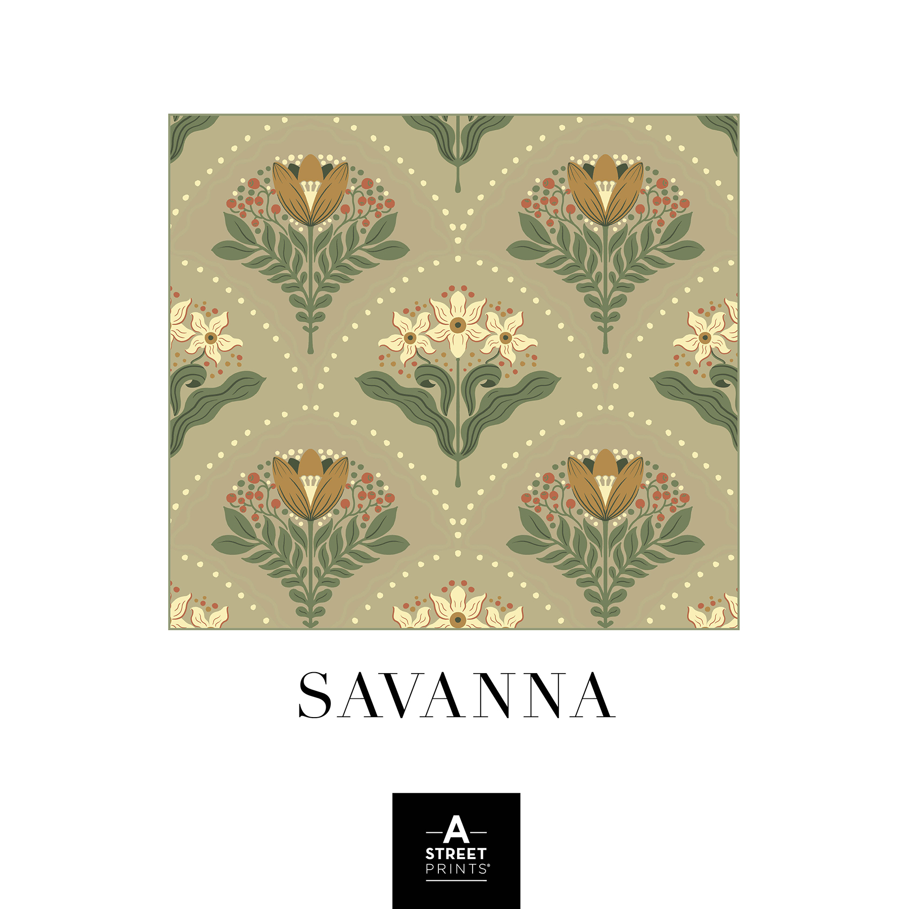 | Dynamic Description | Ornate yet delicate, this floral geometric wallpaper features a trio of tulips centered along dotted, diamond mats framed by a lightly waving diamond trellis embellished with floral stamps at the corners. Seen here in a palette of sage, blue, navy, and metallic copper. Alma is an unpasted, non woven wallpaper measuring 20.9 inches wide by 33 feet long, covering approximately 57.5 square feet per roll. |