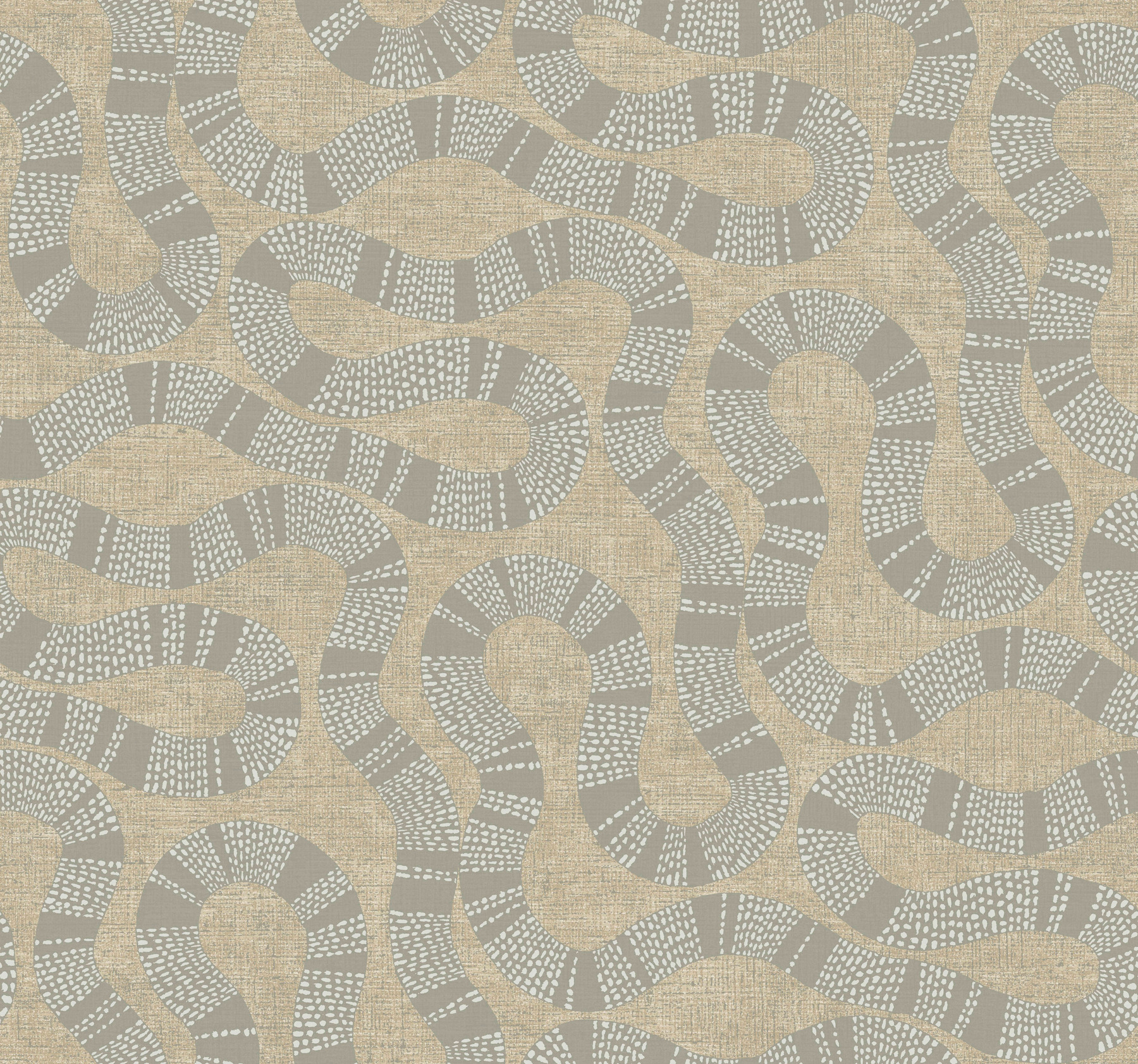 | Dynamic Description | The sinuous grace of pattern Ophidia's serpentine forms is accentuated by a backdrop with rich, textural detailing. Featured here in a palette of taupe, grey, and cream. This Ophidia Wallpaper measures approximately 27 inches wide by 27 feet long, measuring approximately 60.8 square feet per roll. The rich global heritage of timeless relics and hand-crafted naturals are artfully blended in this curated collection of culturally inspired designs. |