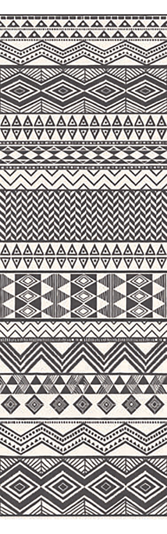The epitome of a modern Aztec print, this black and white mural pops with geometric shapes and lines. Printed on non woven; Paste not included; Comes with 2 panels; Measures 9ft2in x 3ft1in when assembled; Washable & Strippable