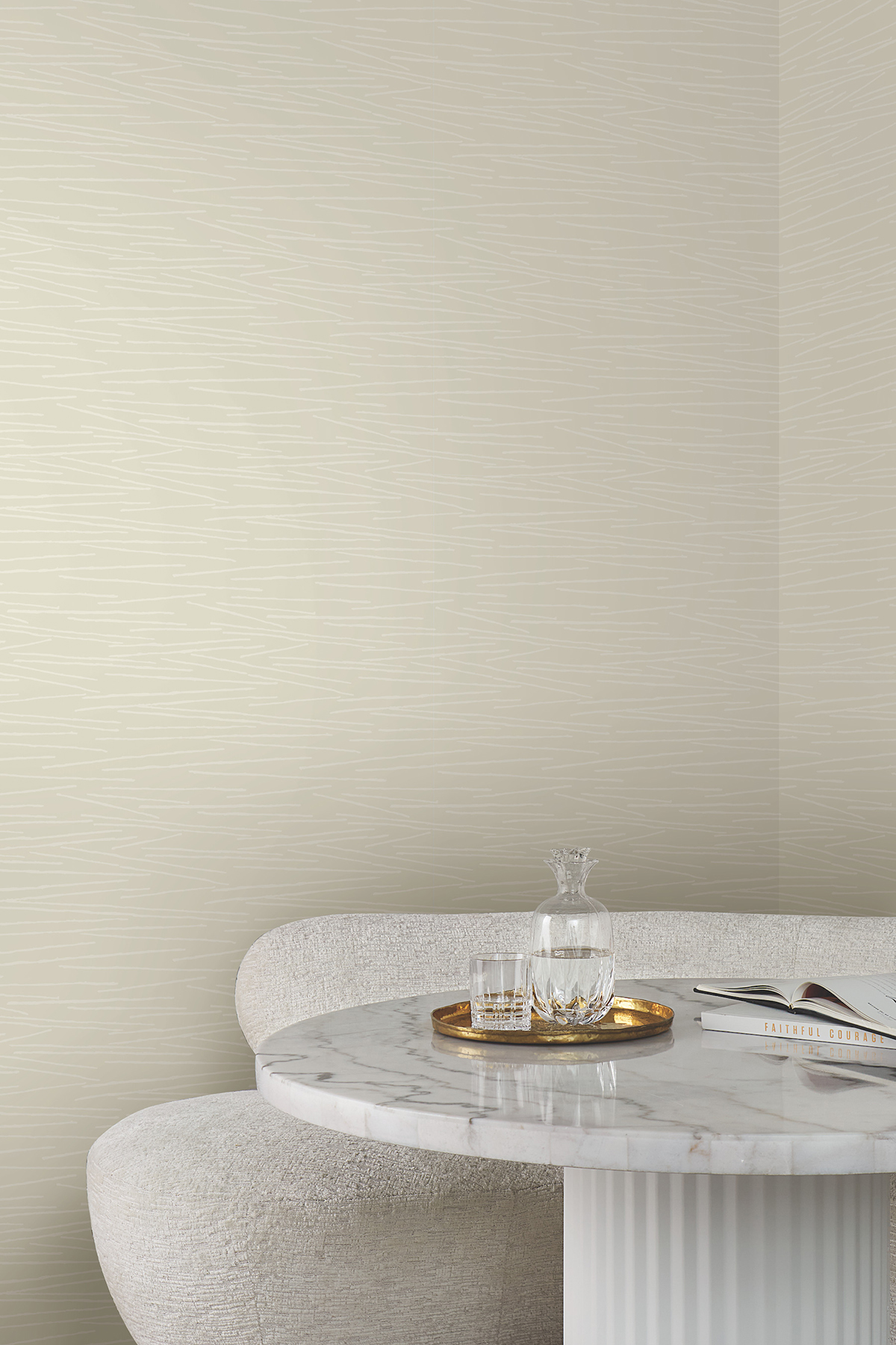 | Dynamic Description | The horizontal, irregular motion of the pattern Line Horizon creates a minimalist field of undulating, beige and white waves. This Line Horizon Wallpaper measures approximately 27 inches wide by 27 feet long, measuring approximately 60.8 square feet per roll. Organic simplicity and lustrous adornment for the modern home. |