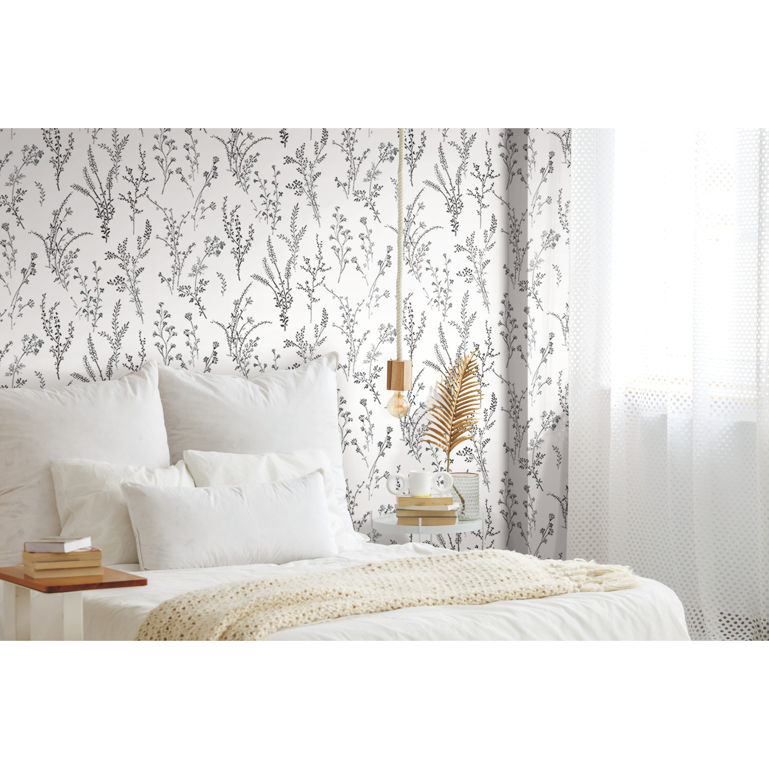 | Detailed Name | York Wallcoverings Wildflower Sprigs Black & White Wallpaper, 20.5-in by 33-ft |