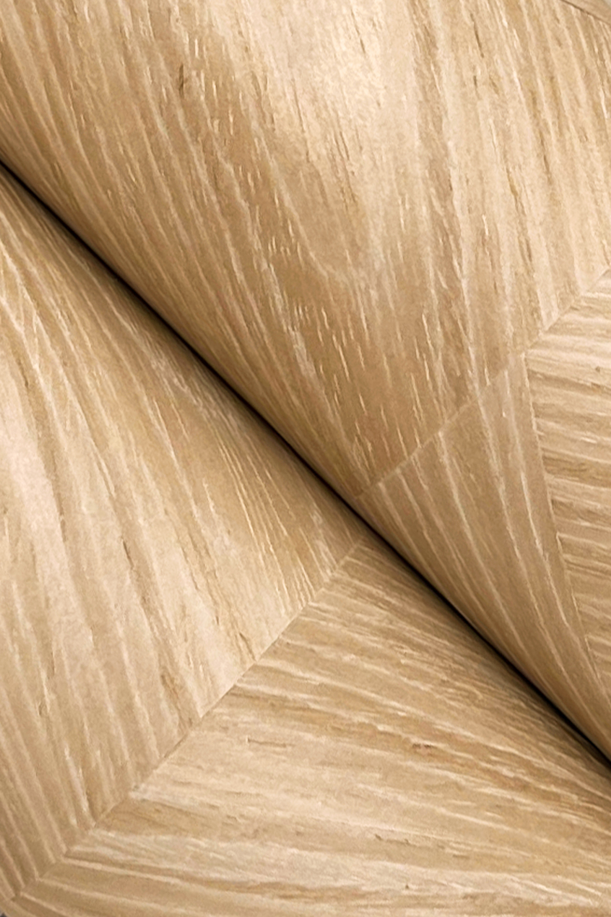 | Dynamic Description | Interlocking Wood’s cerused graining creates a stylized angular chevron where paneled vertical strips meet to form this distinctive, authentic wood veneer, shown in oak beige. This Interlocking Wood Wallpaper measures approximately 36 inches wide by 24 feet long, measuring approximately 72 square feet per roll. A curated showcase of luxurious natural materials. Discover grasscloth in every hue and texture alongside embellished wood veneers and naturally brilliant mica. |