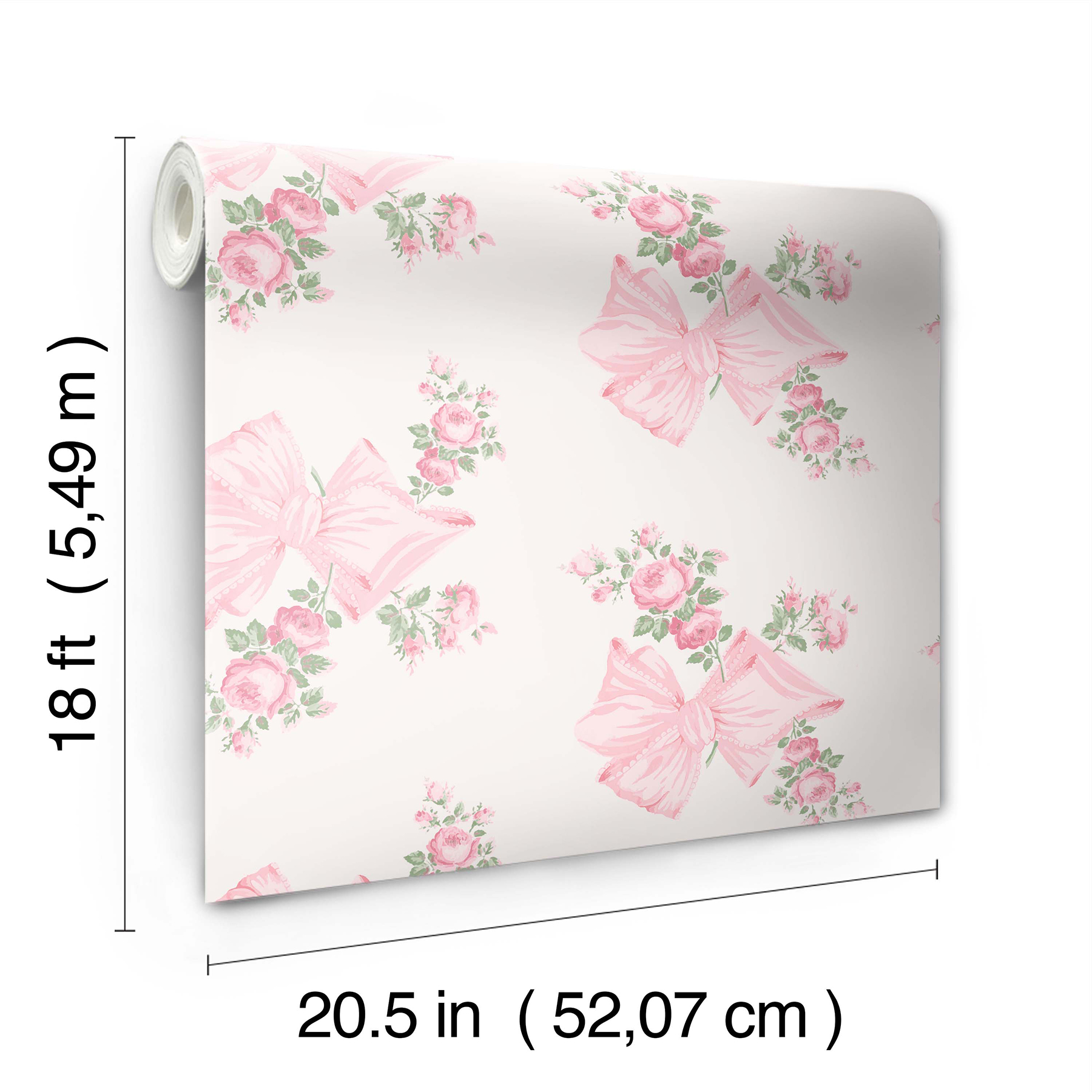 | Dynamic Description | Dress up your home with this vintage-inspired, nostalgic wallpaper. Featuring LoveShackFancy’s signature bows blended with pink cabbage roses, this charming print brightens any space and adds the perfect touch of love. Rosa Beaux Pink Peel and Stick Wallpaper comes on one roll that measures 20.5 inches wide by 18 feet long. |