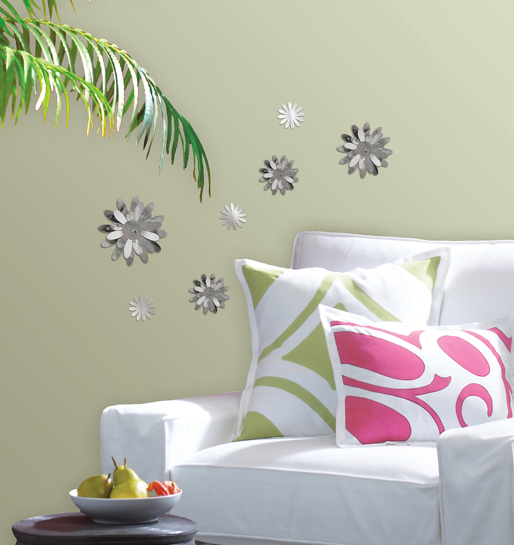 | Dynamic Description | Decorate with these 3d flower mirrors and bring shimmery detail to the walls. The mirrors reflect the room brilliantly while the petals add another dimension to the design. Add a surprising flair that looks funky from all angles, this set comes with 7 different sized flower pieces on a 13inx13in sheet. |