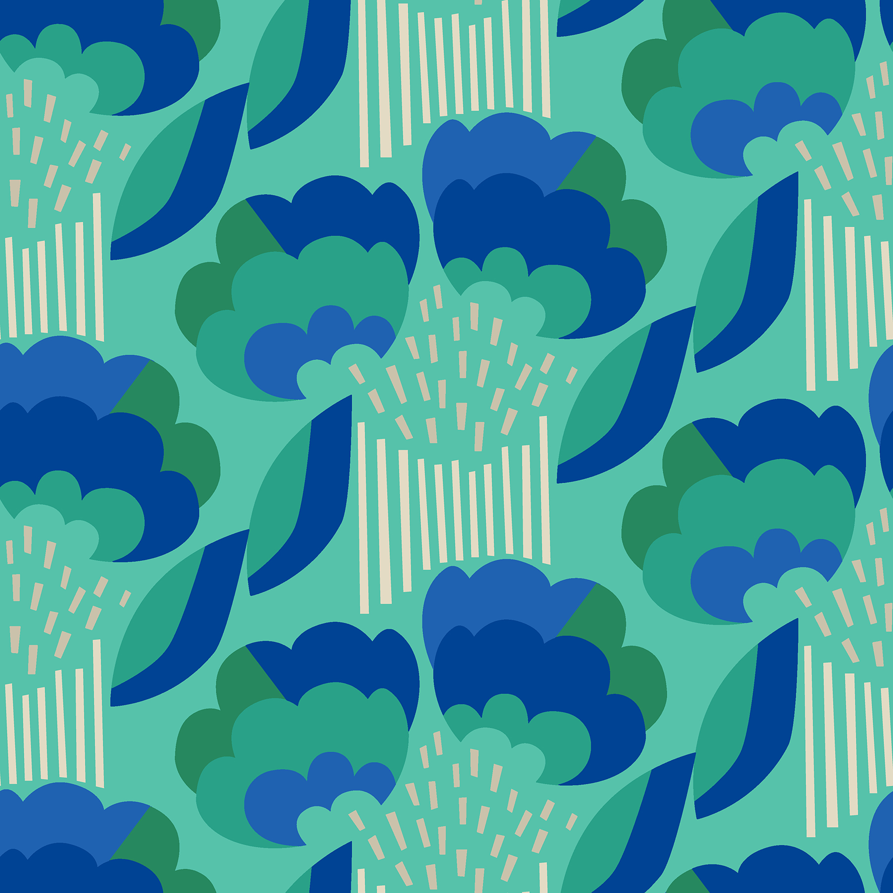 | Bullet Point 1 | Bold, teal, and dynamic future-retro floral peel and stick wallpaper designed by Megan Carter |