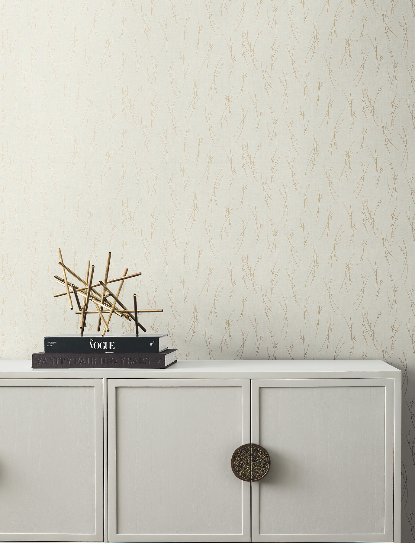 | Dynamic Description | A lively toss of small stems with leaves provides a happy feeling to gentle, open pattern Sprigs, shown in cream and gold metallic. This Sprigs Wallpaper measures approximately 27 inches wide by 26.9 feet long, measuring approximately 60.5 square feet per roll. The long awaited follow-up to the popular first release, Modern Metals Second Edition energizes contemporary spaces with charismatic visual artistry defined by the allure of luminous metallic. |