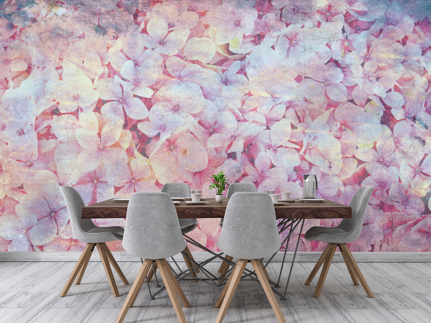 - Bring the beauty of nature into your interiors with this whimsical wall mural. This blossoming bunch of flowers hold a delicate pink hue. Abstract Blooms Wall Mural comes on 5 panels.