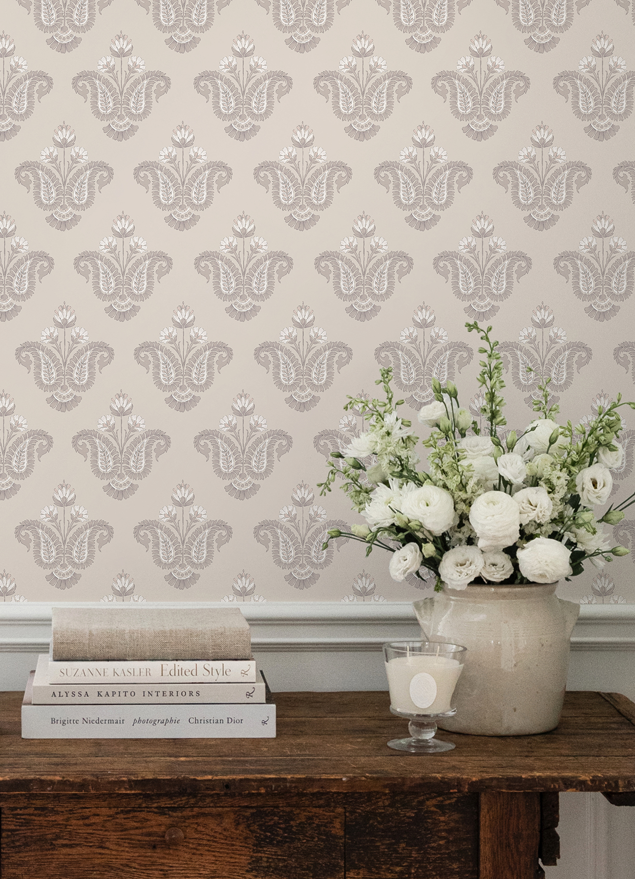 | All Bullets | - Warm brown and taupe floral damask peel and stick wallpaper designed for Nabela Noor Home x WallPops