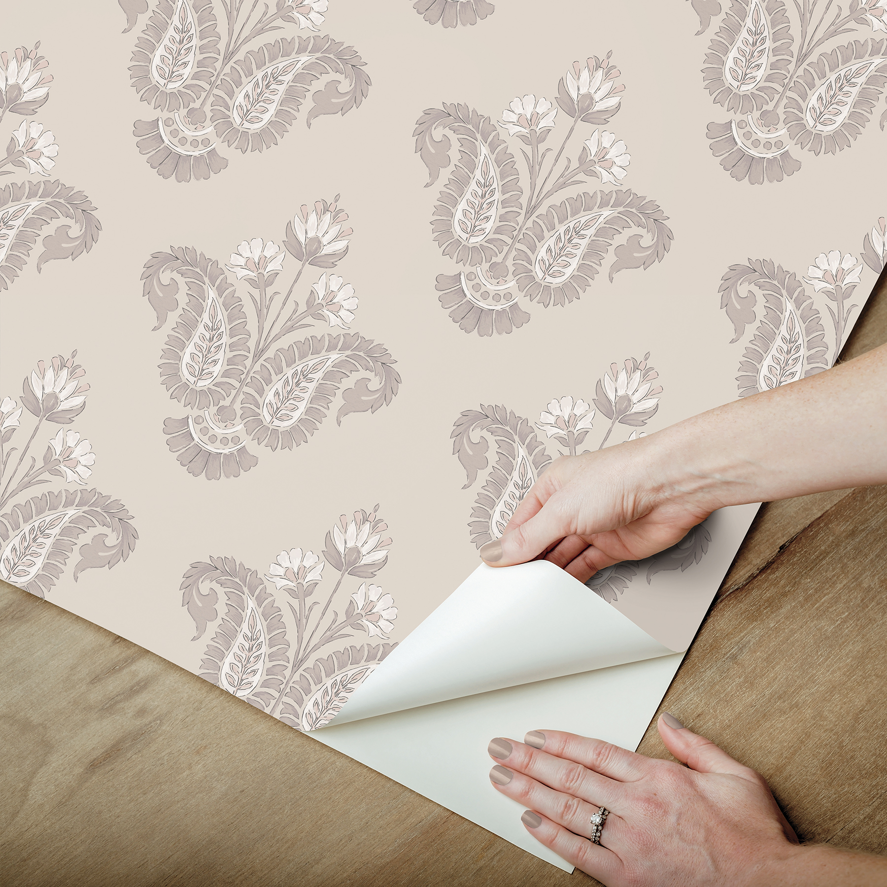 | Dynamic Description | Inspired by the silhouettes of South Asian gold jewelry often worn in special occasions, this warm brown and taupe peel and stick wallpaper pattern from Nabela Noor Home x WallPops brings heartful heritage to your walls. Symmetrical blooms with paisley foliage form a damask that repeats evenly over a solid backdrop. Fazia Jute Peel and Stick Wallpaper comes on one roll that measures 20.5 inches wide by 18 feet long. |