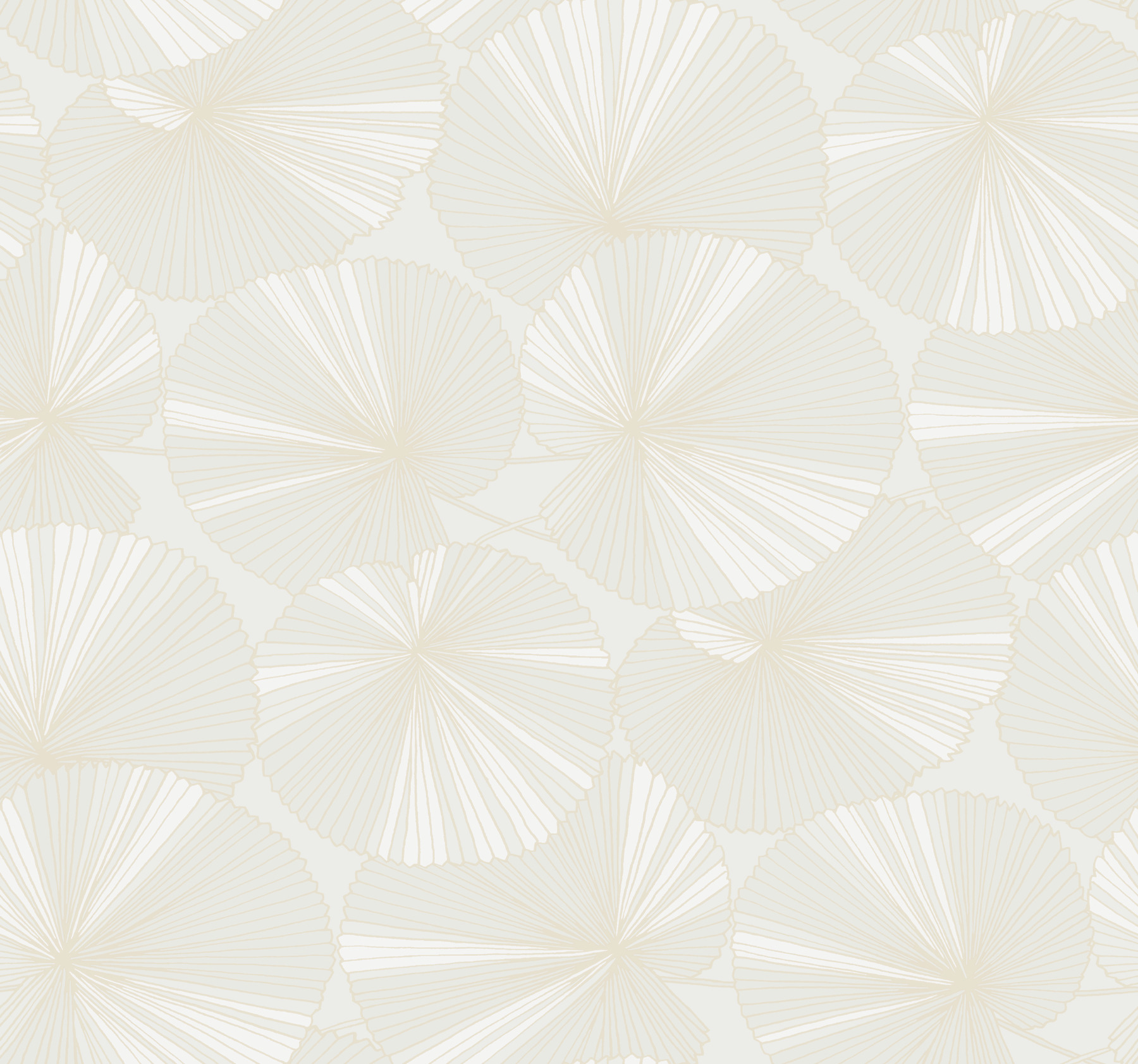 | Dynamic Description | The circular leaves of this flowering aquatic herb emerge and float across the stillness of the water's surface in the pattern Layered Lily Pads, shown in white with champagne gold. This Layered Lily Pads Wallpaper measures approximately 27 inches wide by 27 feet long, measuring approximately 60.8 square feet per roll. Finding beauty in this extraordinary organic world. |