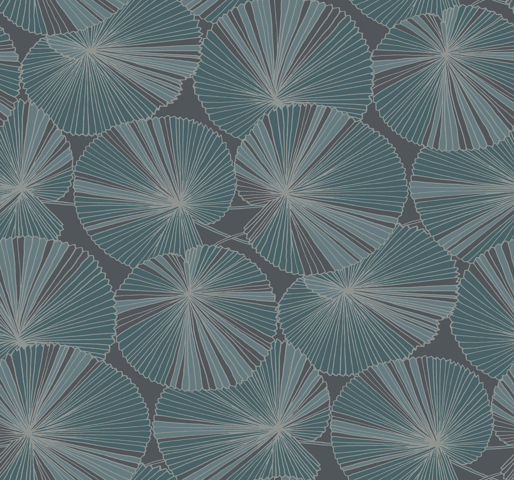 Layered Deep Blue Lily Pads Wallpaper Sample