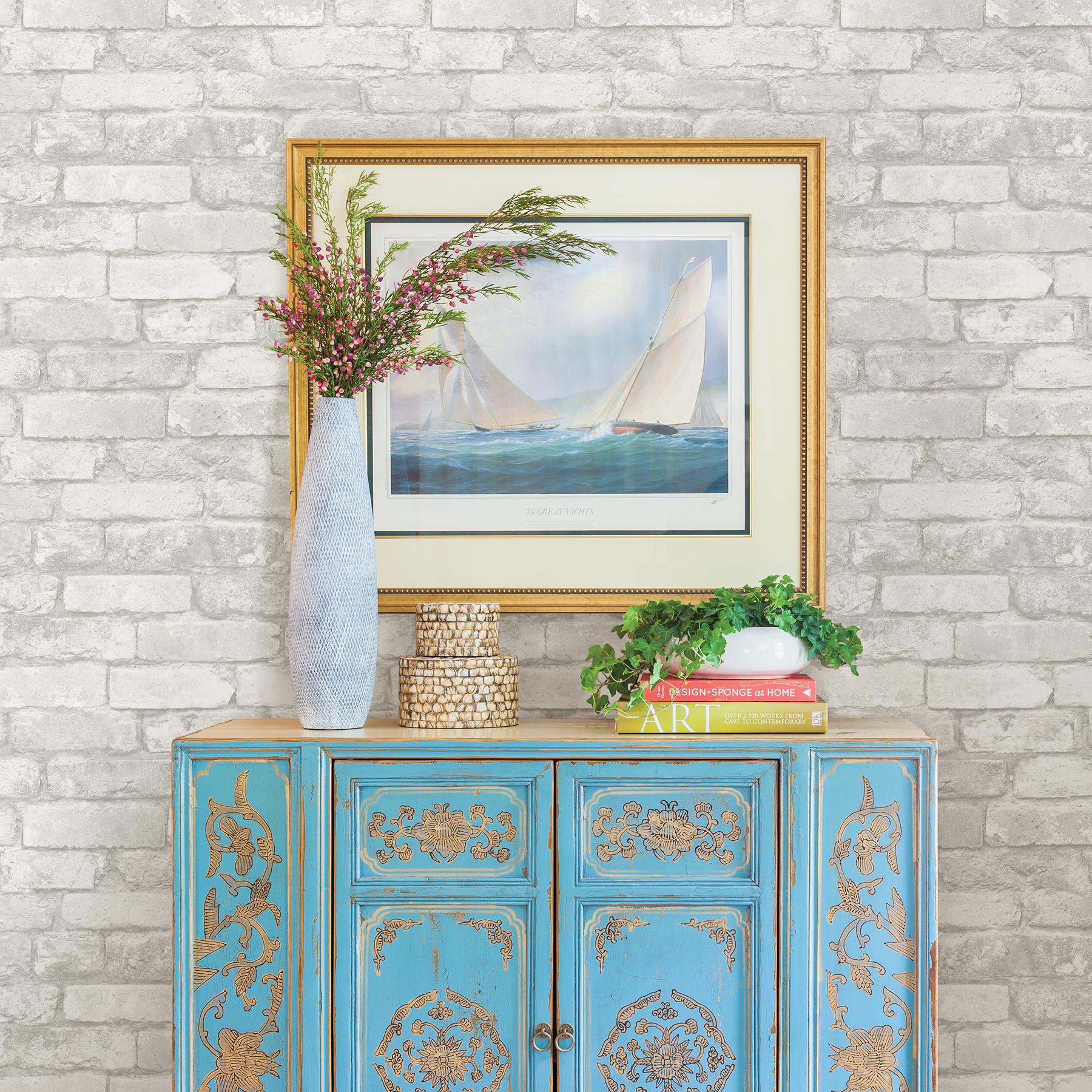 | Dynamic Description | Fashion your own brick wall in a matter of minutes with this chic peel and stick wallpaper. Treated to a beautiful rustic finish, this grey and white faux brick design brings a dimensional look to walls that's both authentic and grand. Printed on a premium substrate that is completely removable, this easy to install wallpaper helps you refresh your home quickly and easily. Comes on a 20.5-in x 18-ft roll. |