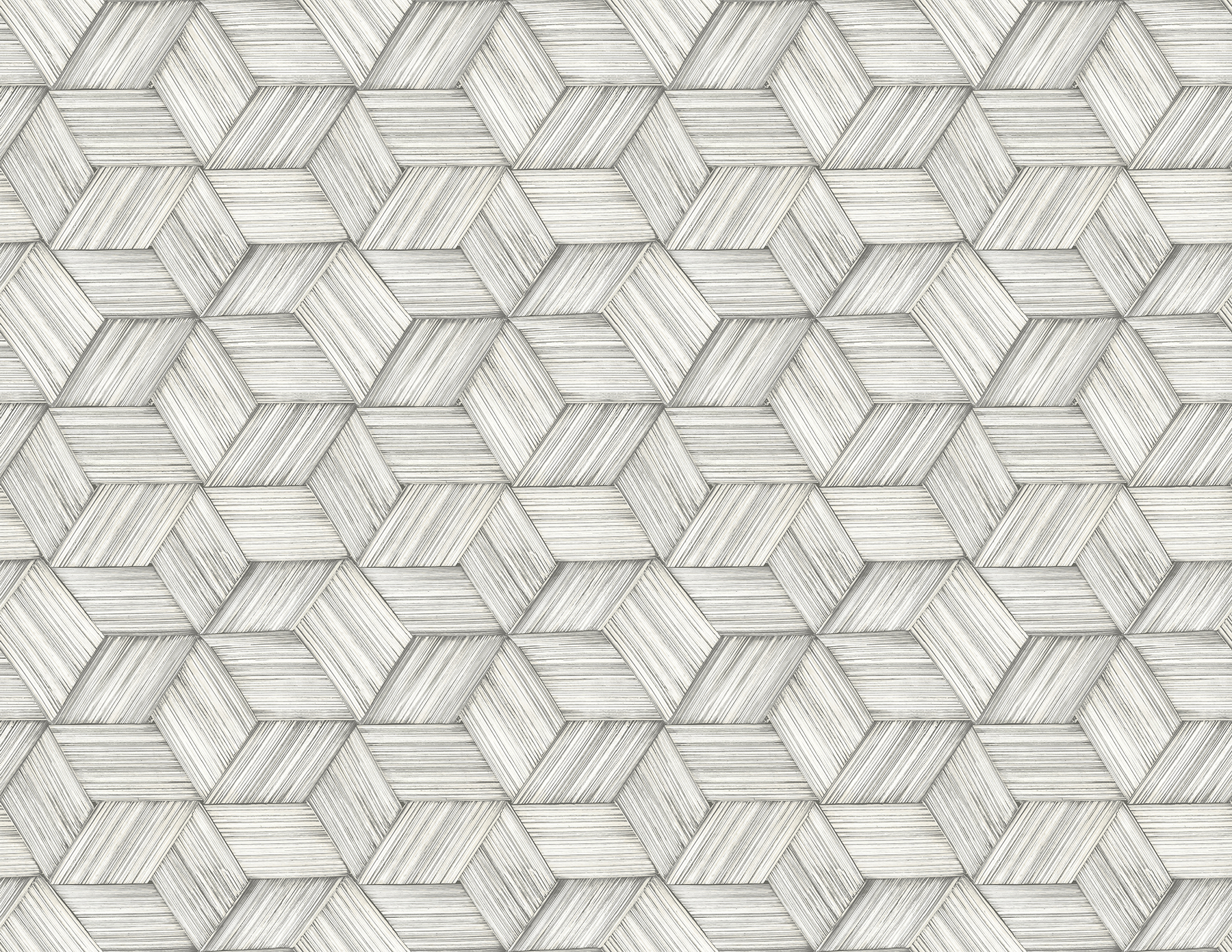 | Dynamic Description | Give your walls a fresh, textured look with this grey geometric wallpaper. Repeating hexagons intertwine in a basketweave style. Thin lines create a textured finish. |