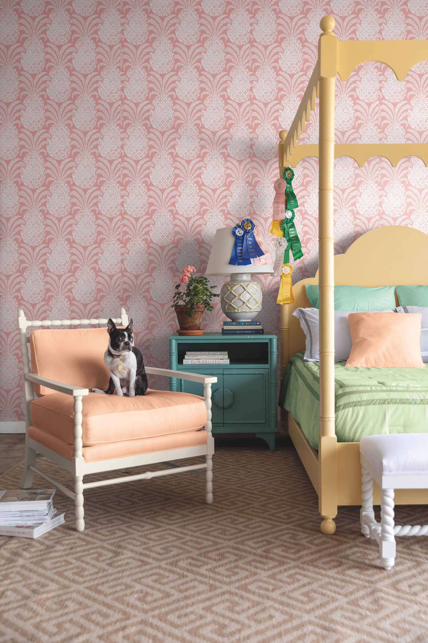 | Dynamic Description | The classic symbol of a warm welcome, a fresh-picked pineapple makes a bold statement in the novelty Colony Club pattern. This Colony Club Peel & Stick Wallpaper measures approximately 27 inches wide by 20 feet long, covering About 45 square feet per roll. Fresh! Fun! Fabulous! Exploded florals and whimsical elements such as strawberries and pineapples pair beautifully with timeless graphic elements that include luxuriant trellis and classic Chinoiserie motifs. Big, bold, unexpected. Timeless. And always happy. |