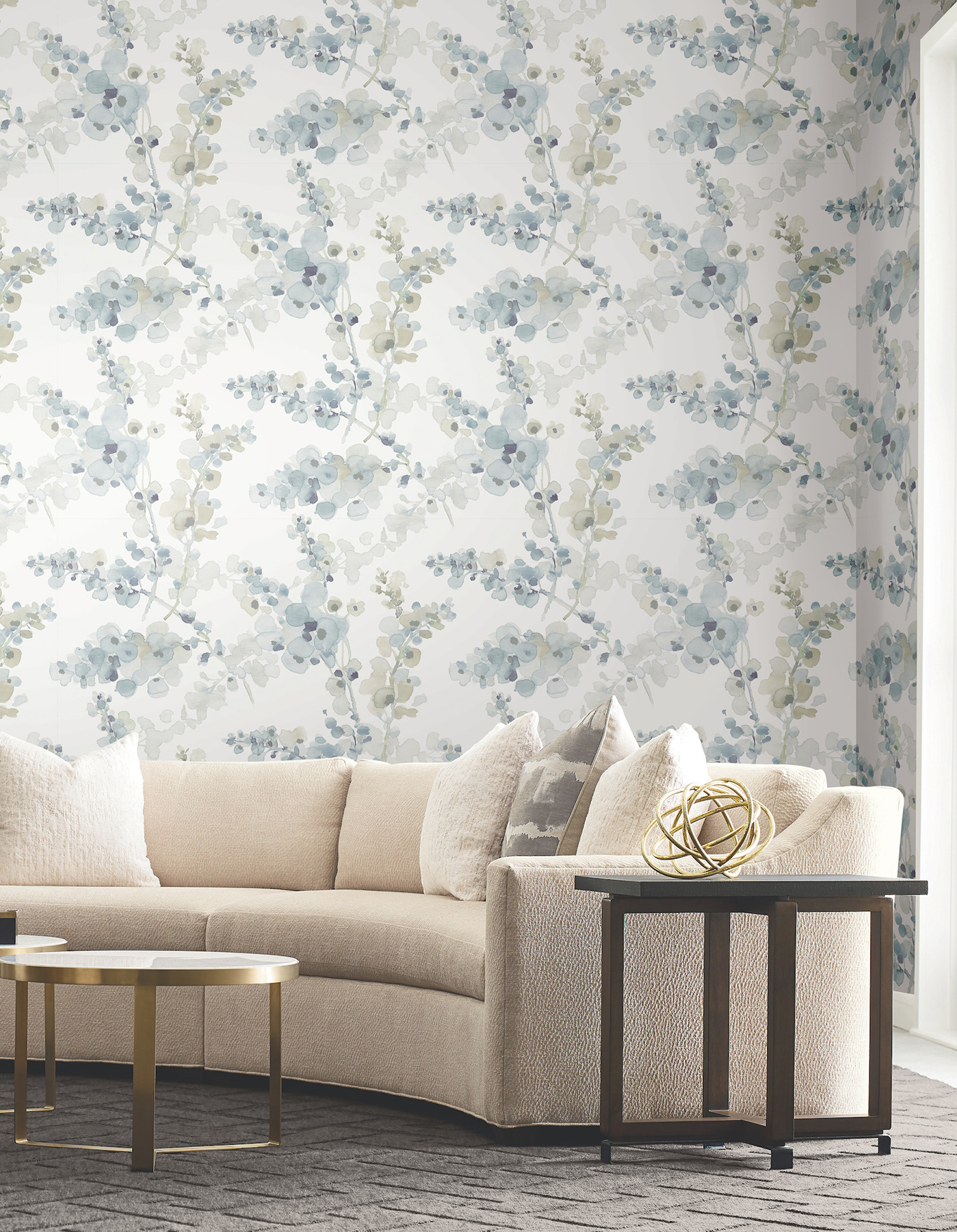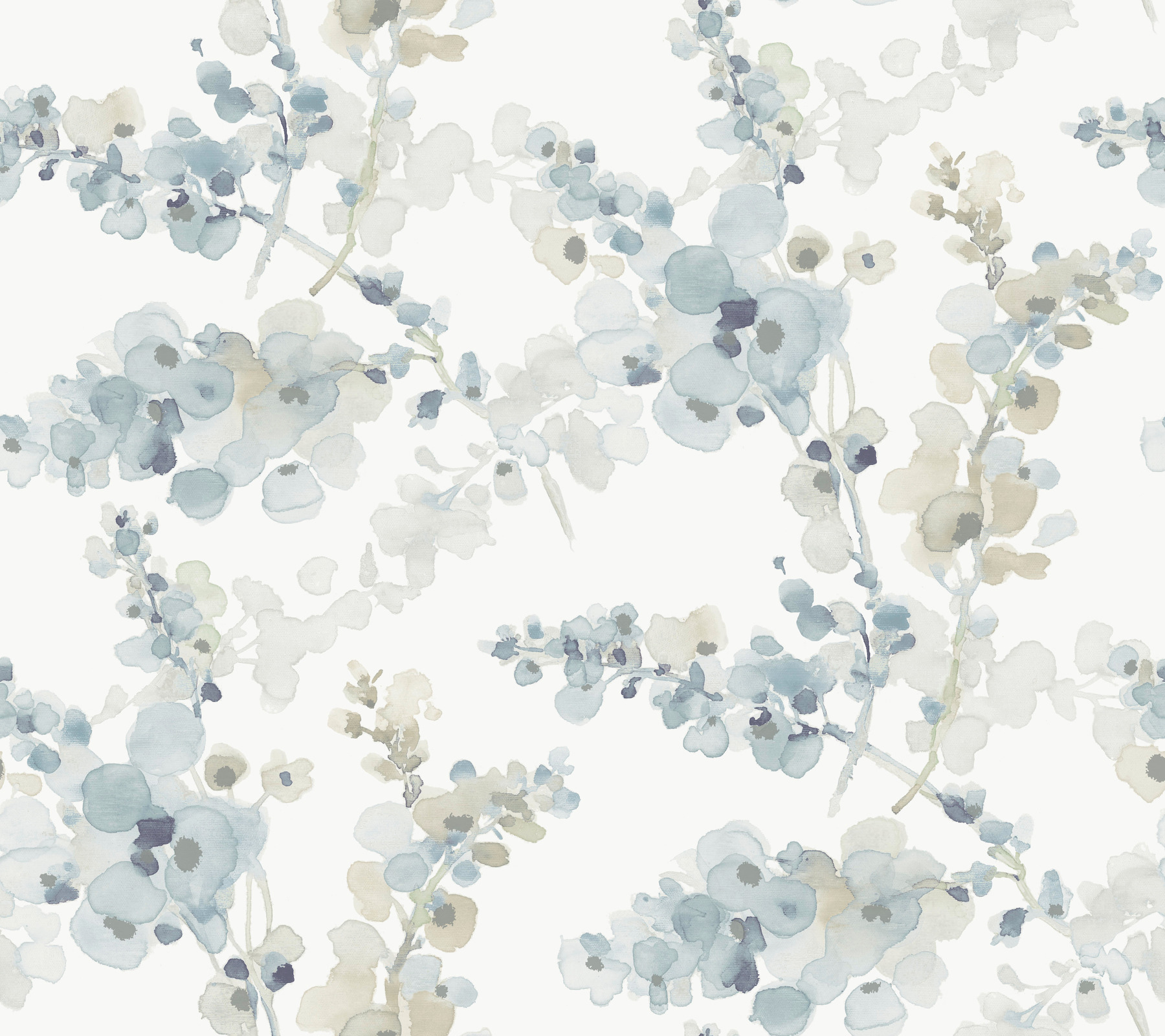 | Dynamic Description | Stems of frothy petals from a watercolor garden portfolio make Blossom Fling a vivacious classic with fresh perspective. Seen here in a palette of blue, moss, and pale grey with metallic silver accents. This Blossom Fling Peel + Stick Wallpaper measures approximately 27 inches wide by 20 feet long, measuring approximately 45 square feet per roll. Candice Olson’s celebrated signature of current yet timeless design inspires these popular additions to her Premium Peel + Stick product offering. This is Simply Candice. |