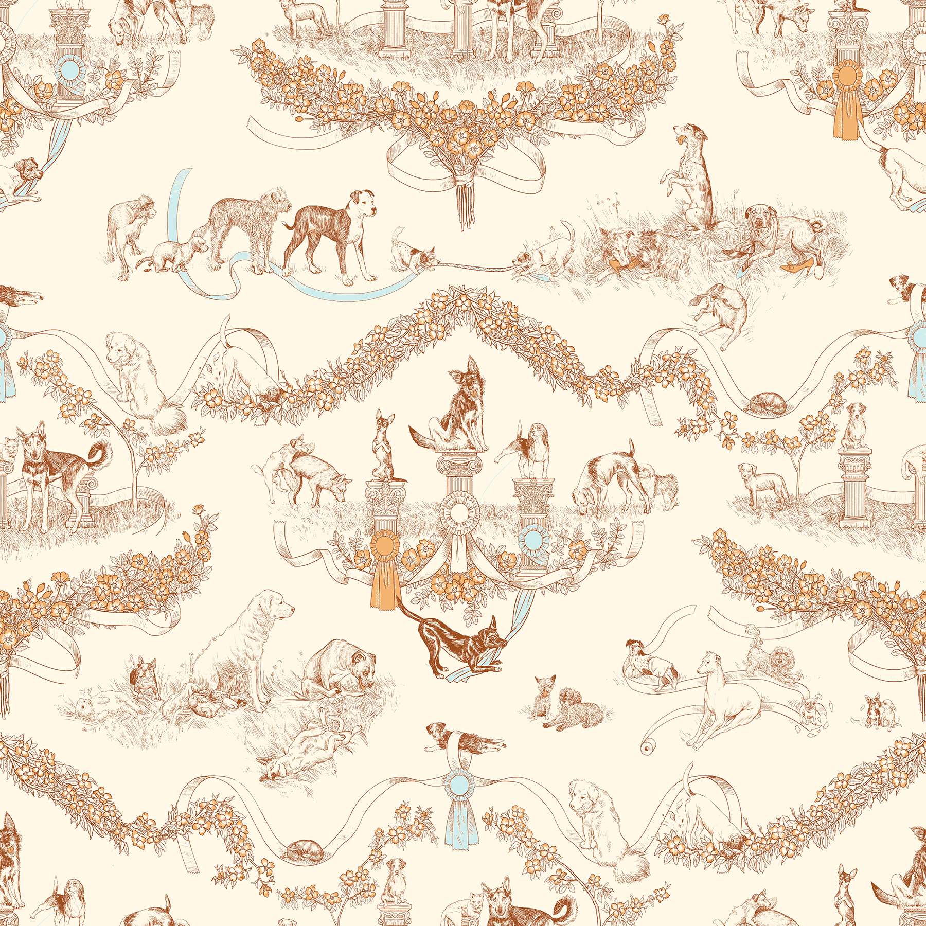 | Description + Bullets | Orange and white dog toile from the Rachel Antonoff x WallPops peel and stick wallpaper collection; Peel and stick to apply, pull up to remove; WallPops Peel and Stick NuWallpaper is safe for walls and leaves no sticky residue behind; Easily repositionable while installing; WallPops Peel and Stick NuWallpaper sticks to any smooth, flat surface - perfect for DIY projects; Ideal for rental or home decorating; Comes on a 20.5-in x 18-ft roll and covers about 30.8 sq. ft; Design repeat of 20.5-in; This product should NOT be applied to textured walls - smooth clean, dry, painted surface only (no Non-Stick paint or soap residue) |