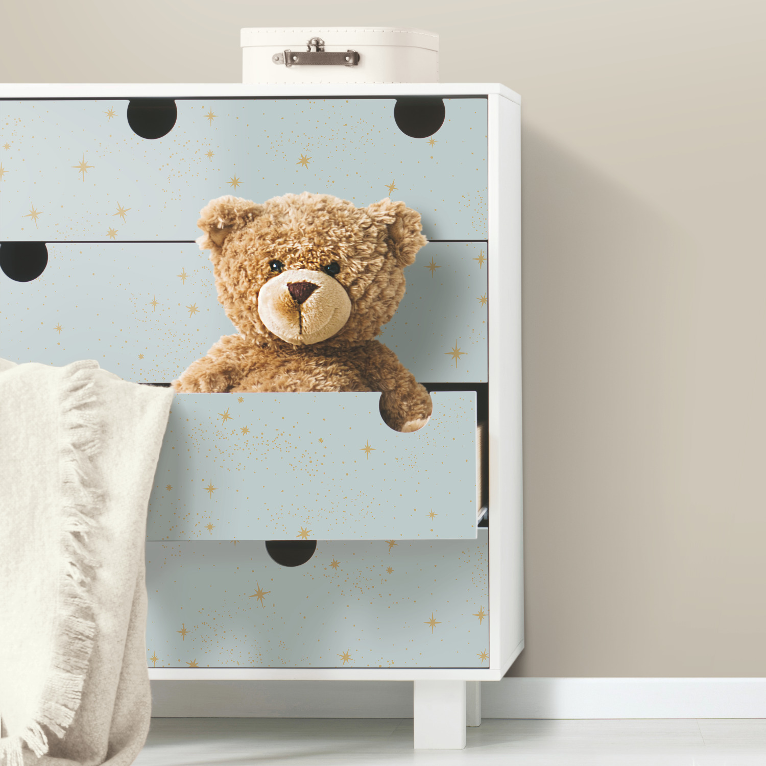 | Dynamic Description | Simple yet statement making, Blue Upon A Star Peel and Stick Wallpaper is sure to catch the eye of everyone who enters your home. This whimsical pattern creates a space for the mind to wander. Juvenile yet sophisticated, create a charming room in minutes with our peel and stick technology. Simply peel from the backing and stick to any smooth surface of your choice. From walls to furniture and more, create a come you’ll love with peel and stick wallpaper from RoomMates. |