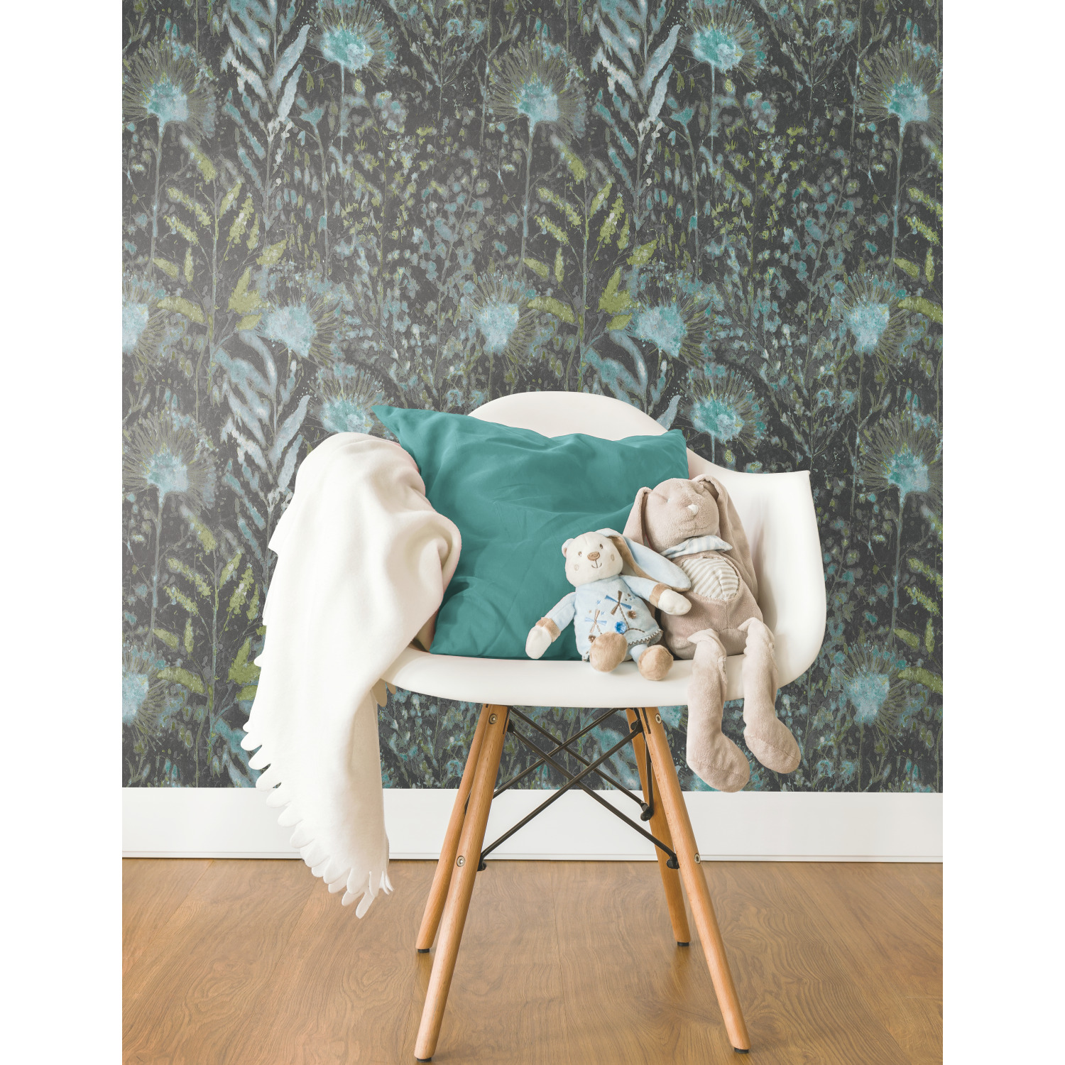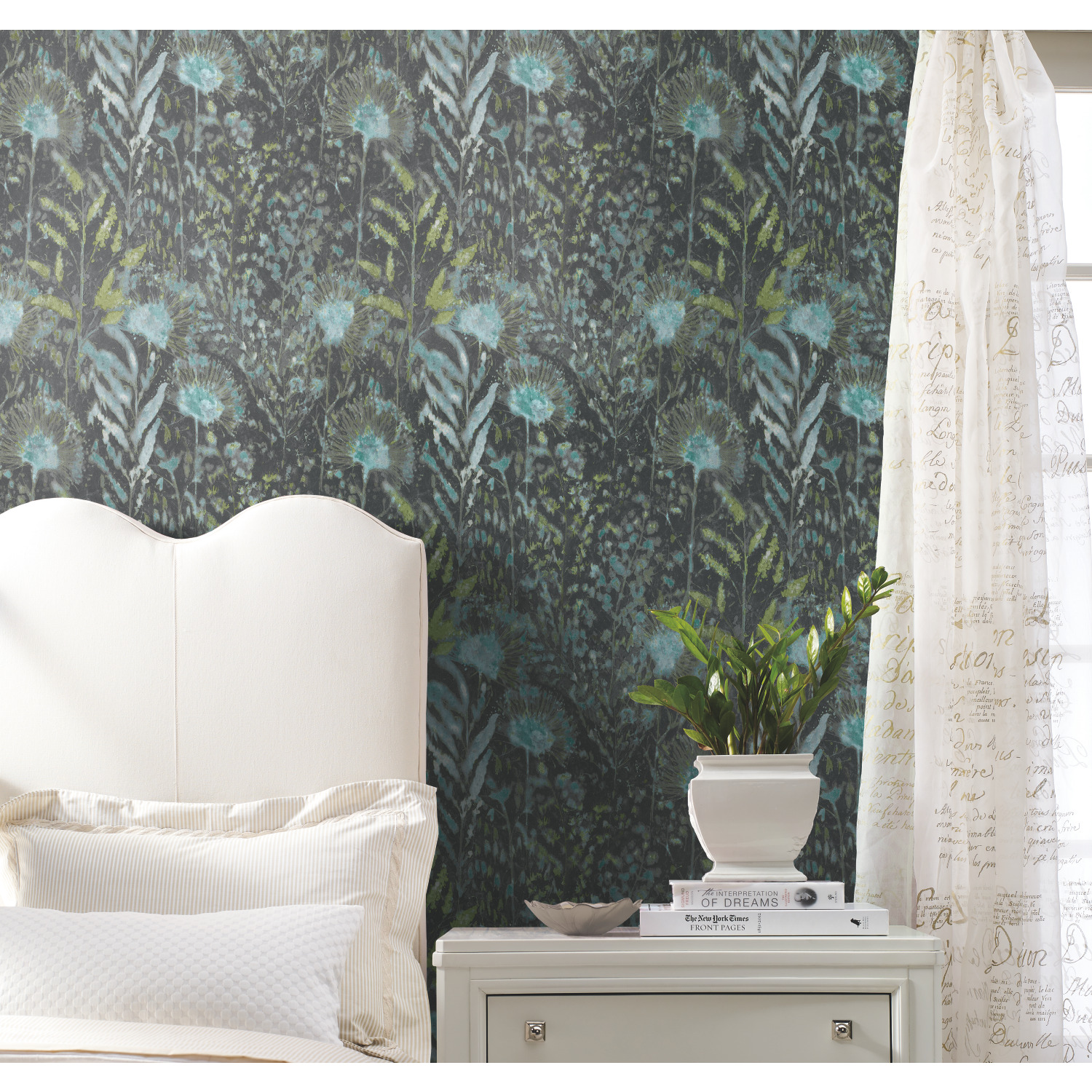 | Dynamic Description | Walls become a backyard garden with Teal Dandelion Peel and Stick Wallpaper by RoomMates. This pattern, inspired by the natural world, gives any surface a dimensional look with little effort. Add architectural details to any space for an accent wall, full room makeover, furniture DIY, and more. Simply cut the peel and stick wallpaper to size, remove the backing, and stick to any smooth, clean surface. Pull off the wall in full sheets when it’s time to redecorate: no sticky residue or damage left behind. Bring the natural world into your home with Peel and Stick Wallpaper from RoomMates. |