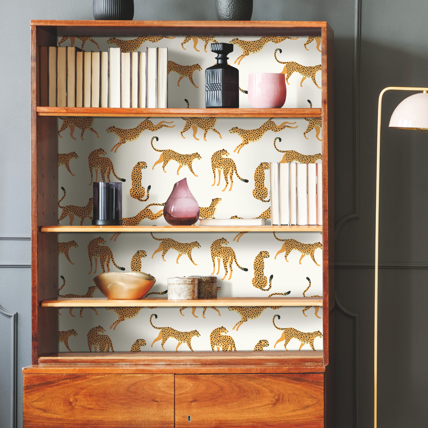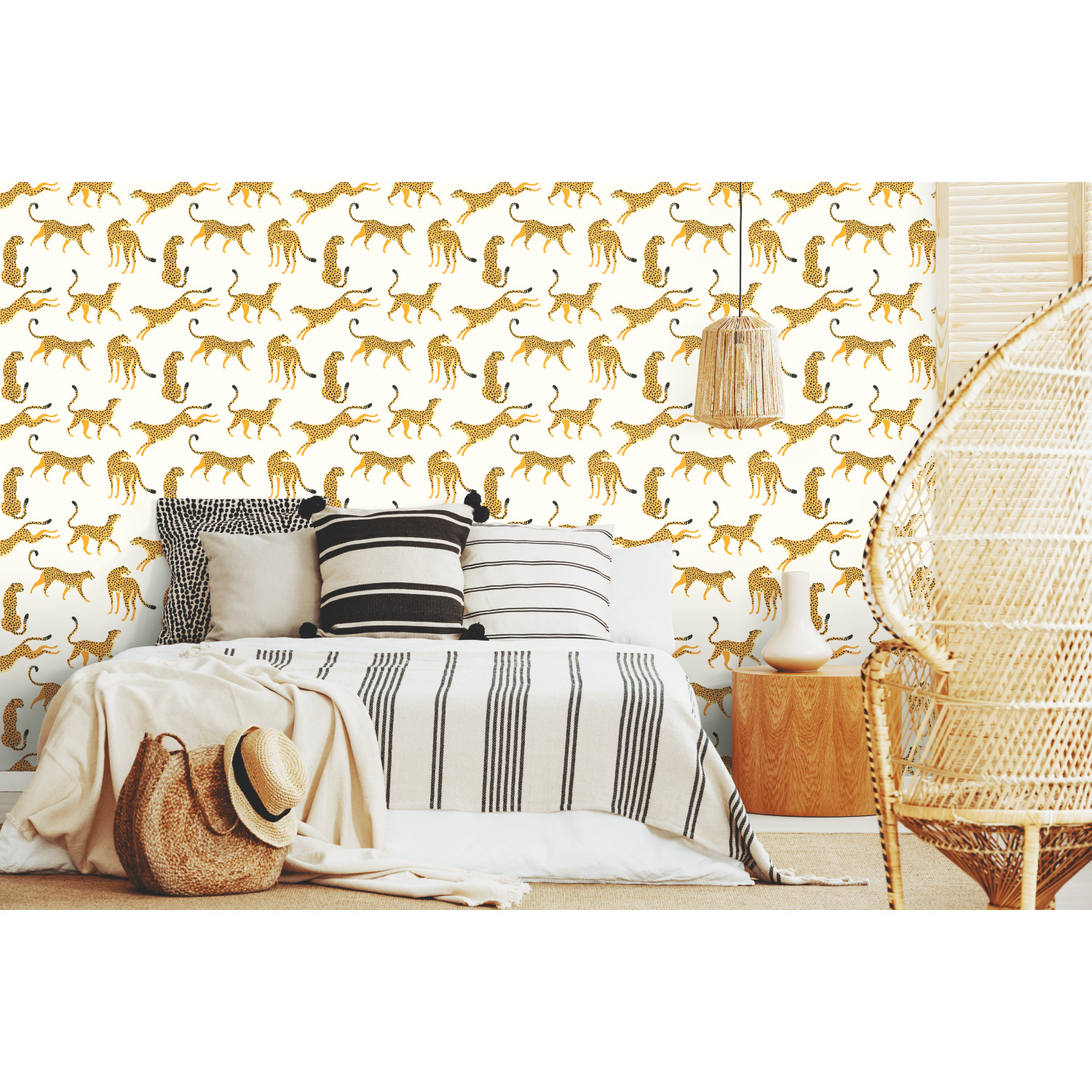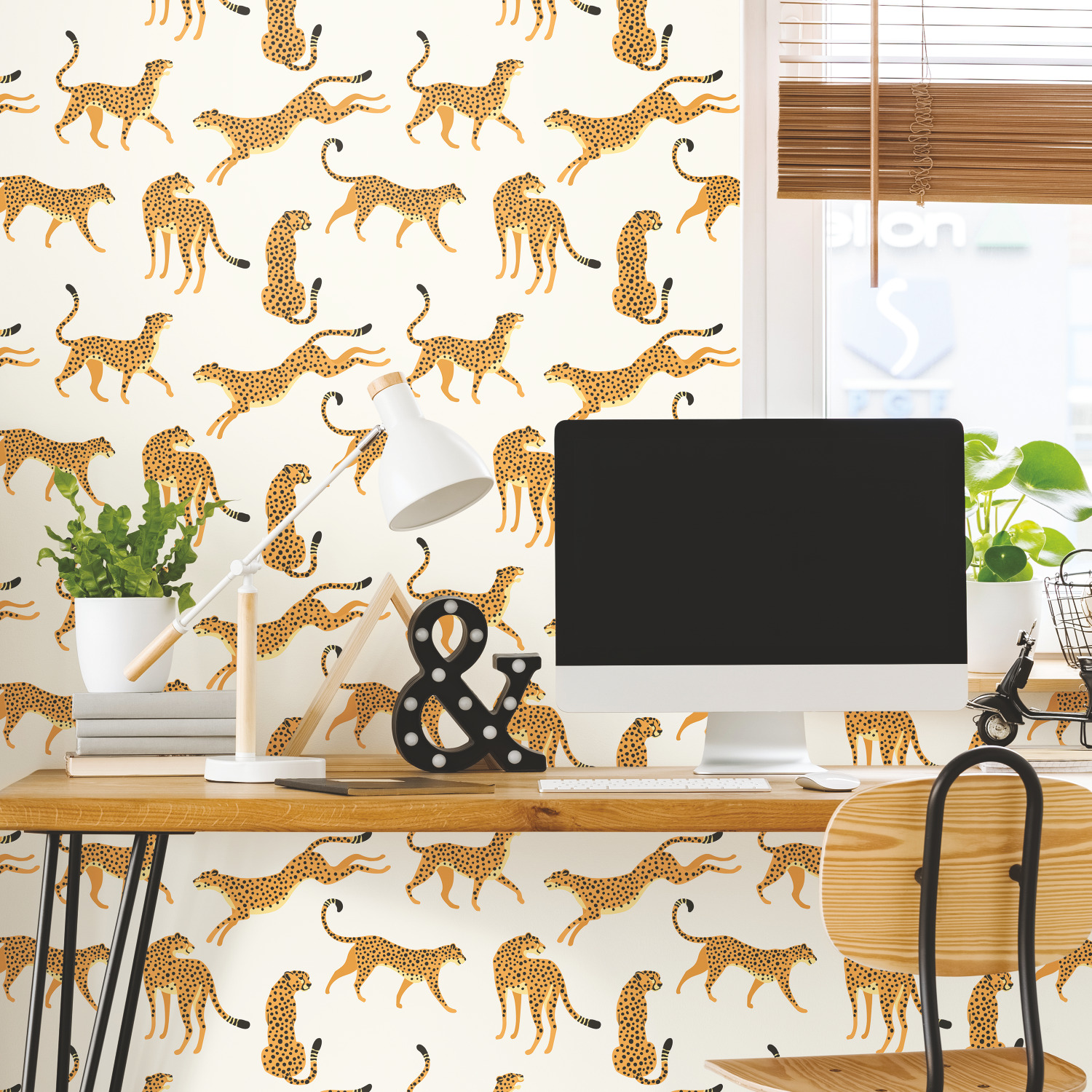 | Dynamic Description | Stylized cheetahs captured in creative c-like poses are scattered across this RoomMates peel and stick “Cheetah Cheetah" wallpaper. Prancing, leaping, sitting, and watchfully standing, the cheetahs display their tractive spots and dark tipped tails in fluid design colored with a warm ivory background and tawny gold pelts with black spot accents. This clever and sophisticated design will be the statement in any room in the home. RoomMates peel and stick wallpapers are an easy and affordable way to decorate. Peel off the paper backing and smooth onto the wall, no additional adhesive required. When it’s time to redecorate, simply remove them effortlessly in full strips with no remaining sticky residue or damage to walls. |