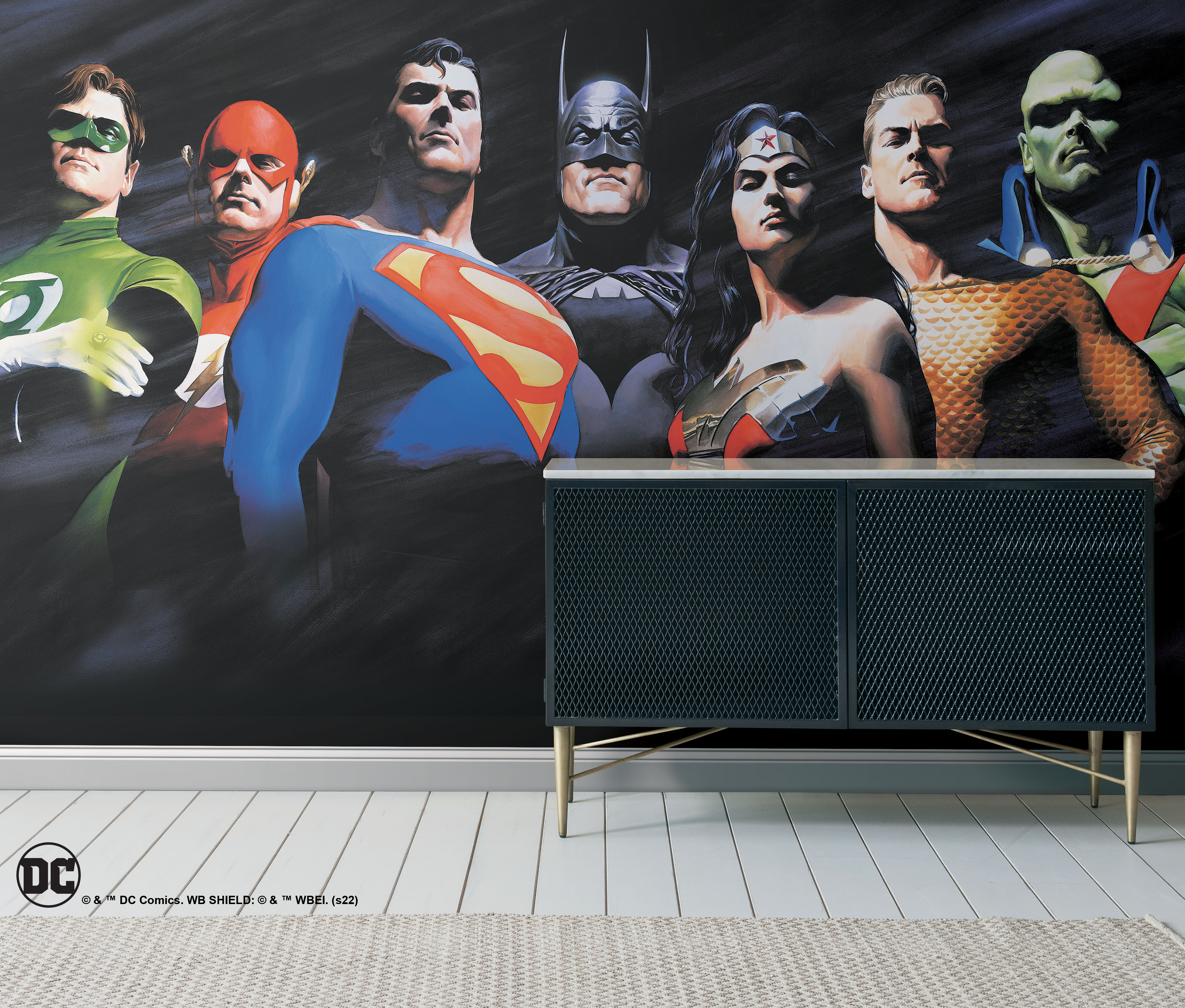 | Dynamic Description | The DC Universe stands behind you in this Alex Ross Justice League Peel and Stick Mural. The show-stopping signature style of artist Alex Ross creates gigantic and dramatic art for the wall, capturing iconic superheroes Flash, Green Lantern, Superman, Batman, Wonder Woman, Aquaman, and Martian Manhunter in this modern removable and repositionable peel and stick mural. It is easy to apply in dorms, bedrooms, playrooms, study, and gaming spaces. RoomMates Peel and Stick murals are high-quality and ultra-removable, creating fun, renter-friendly décor with ease of application and no residue or damage to walls, ever. |