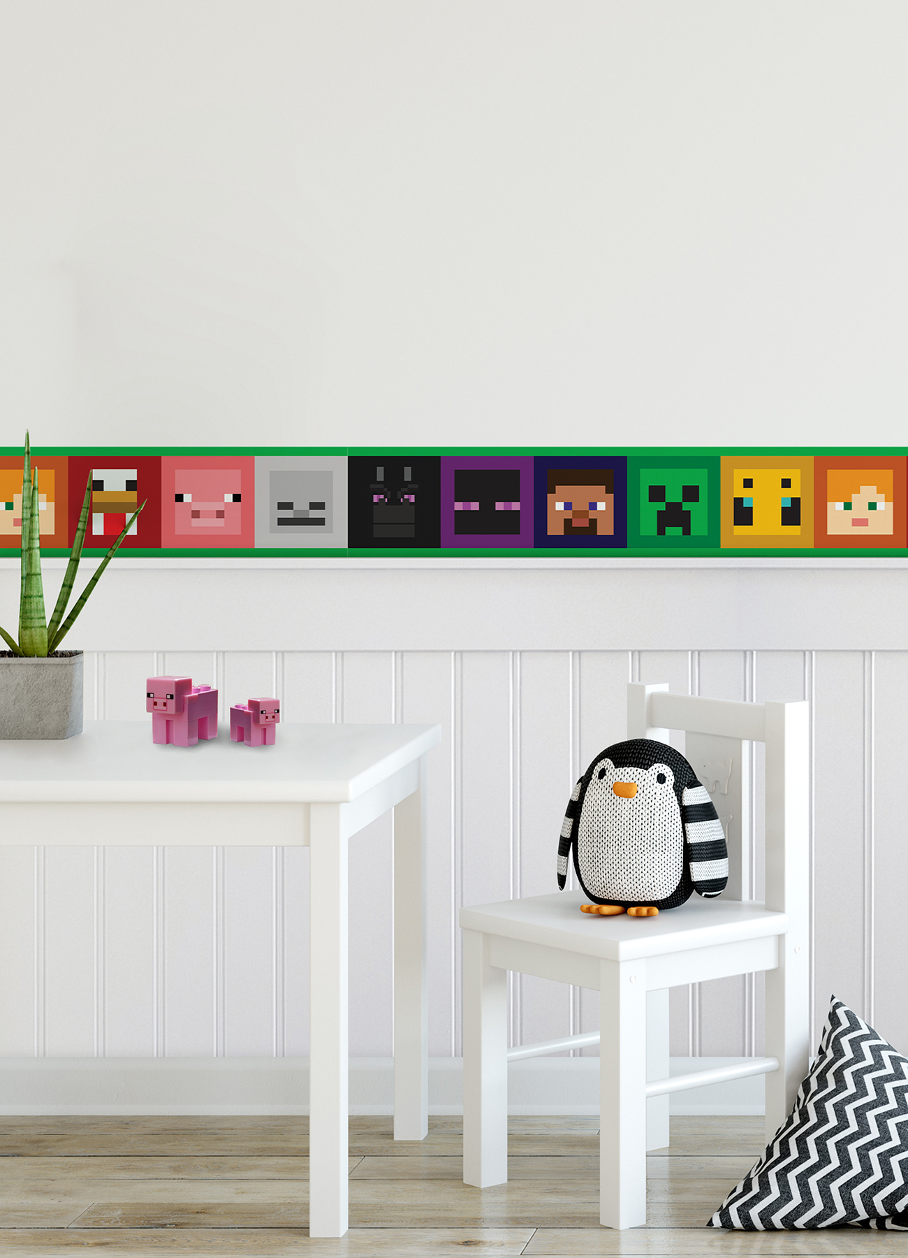 | All Bullets | - Peel and stick wallpaper border with officially-licensed Minecraft character faces.