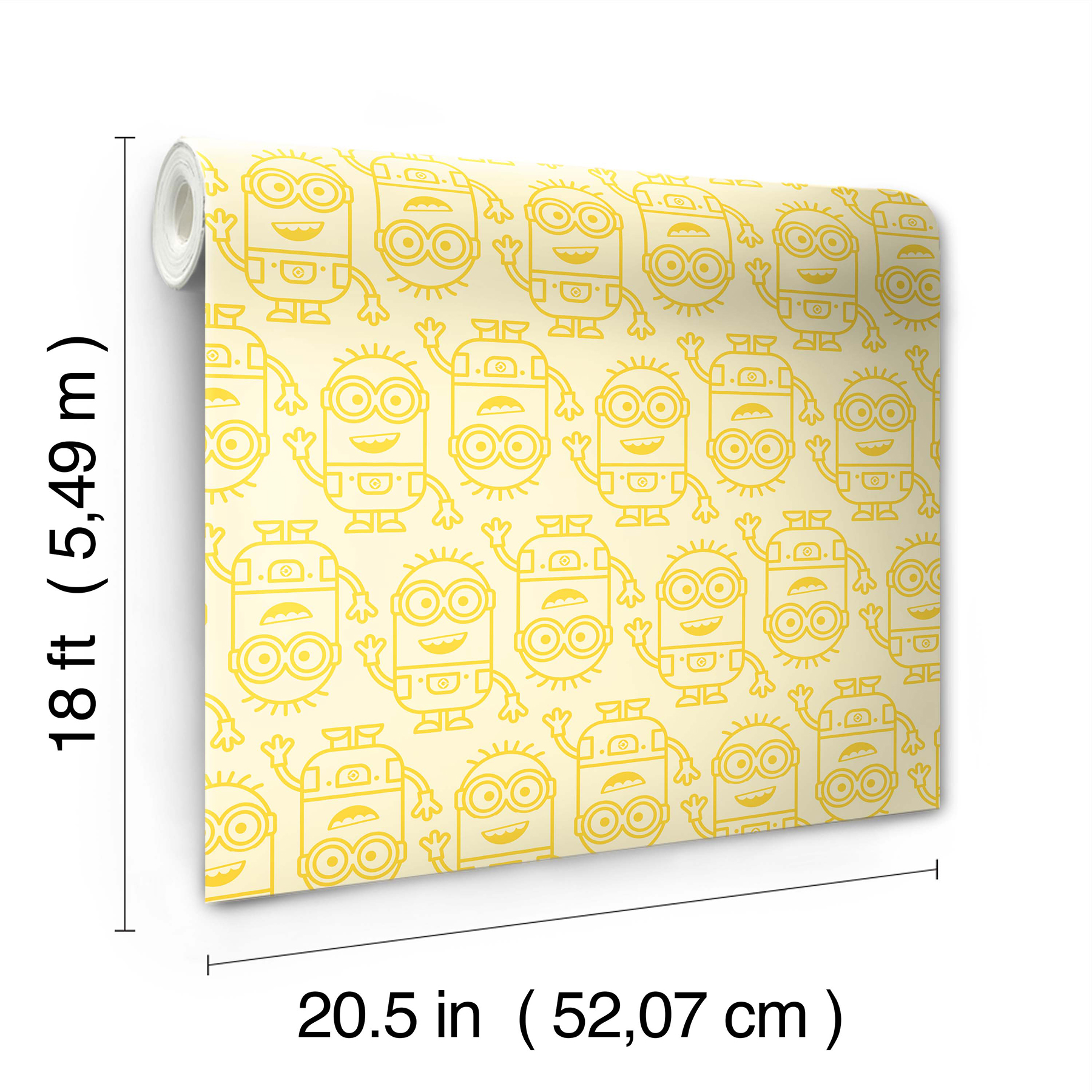 | Dynamic Description | Embark on a journey of laughter and antics with our Minions Line Art peel and stick wallpaper. Featuring yellow line work illustrations of Minions atop a light yellow backdrop, this character print brings a sense of joy and playfulness to any room, making it a perfect choice for kids' bedrooms, playrooms, and beyond. Installation is as simple as Peel, Stick…Done!™ Minions Line Art Yellow Peel and Stick Wallpaper comes on one roll that measures 20.5 inches wide by 18 feet long. |